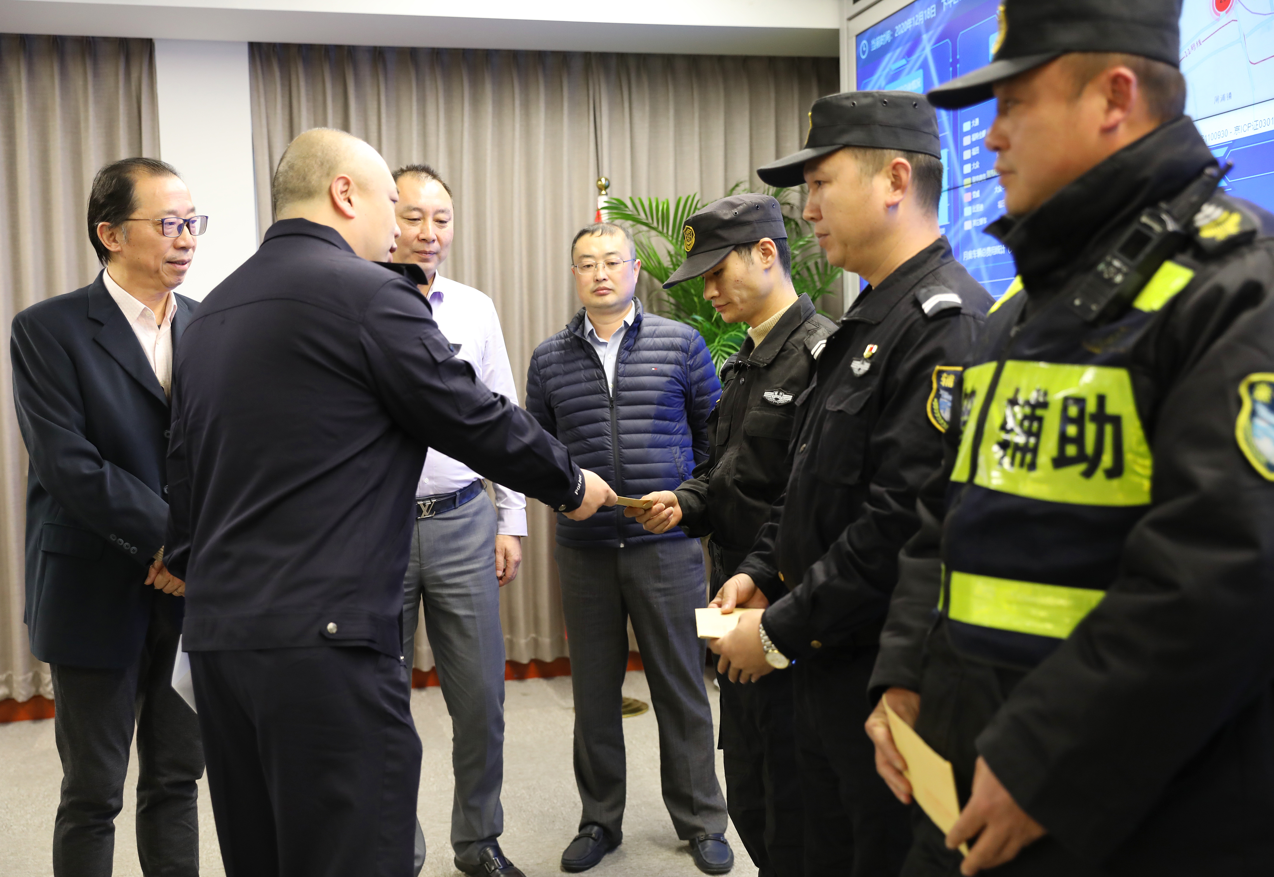 12月18日,市公安局治安总队保安管理处处长丁宁、市保安服务行业协会秘书长杨跃毅到宗保公司慰问跳水救人的队员胡锦涛、周书力、谭波、李斌。