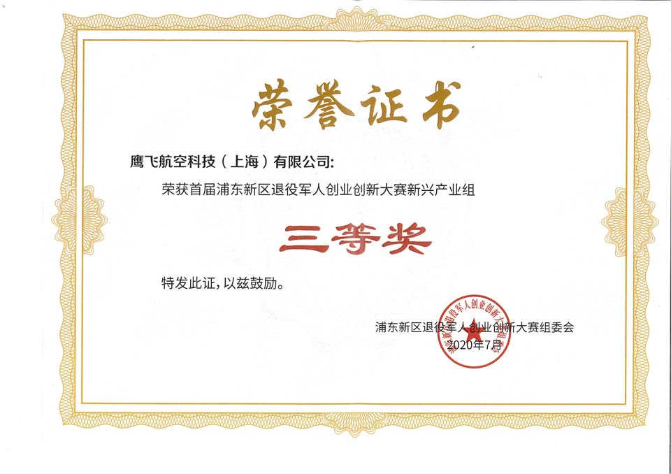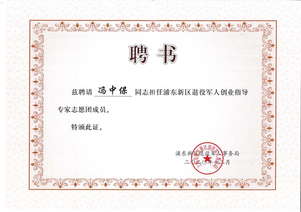 宗保公司创始人冯中保被聘任为浦东新区退役军人创业指导专家志愿团成员。宗保公司旗下的鹰飞航空科技(上海)有限公司荣获新兴产业组三等奖,充分展示了公司退役军人创业创新风采和昂扬向上的精神风貌。