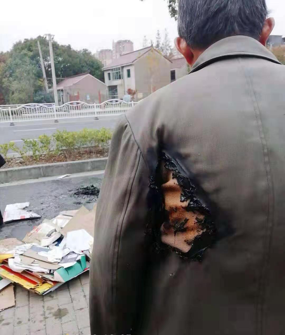 当日12:10左右,戚思功巡逻至江海南路与新塘路交叉口向南约30米处时,发现前方一收废品老人骑着三轮车,车上的废品冒烟起火,而此时老人还未发觉,仍在低头猛踩踏板往前赶。