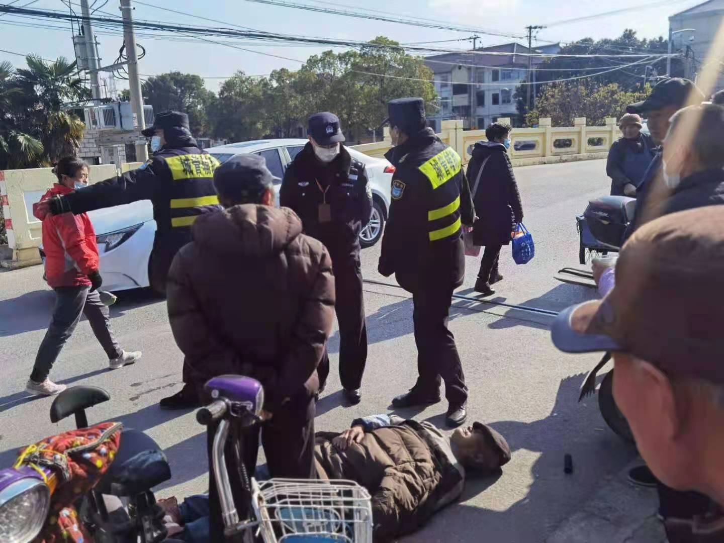 当天11:00左右,任明强巡逻至周祝公路北侧时,发现一位老人躺在马路中间。任明强立即上前查看,老人神志不清,已处于昏迷状态。