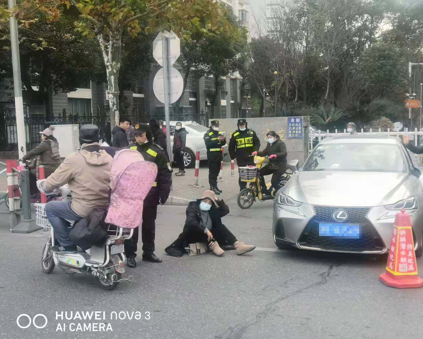 因事发地在小区的出入口,人流、车流较大。为防止交通拥堵和二次交通事故的发生,简毅达便在事故现场放置警戒标志,维持交通秩序。同时,拨打120急救和周浦派出所电话。