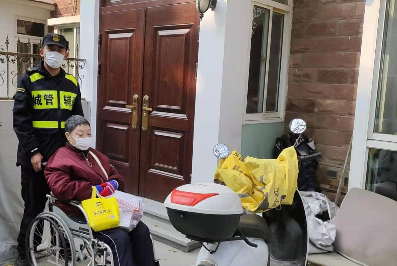 轮椅老人无力回家 宗保队员热心帮忙—周浦市容机动组队员帮助老奶奶回家