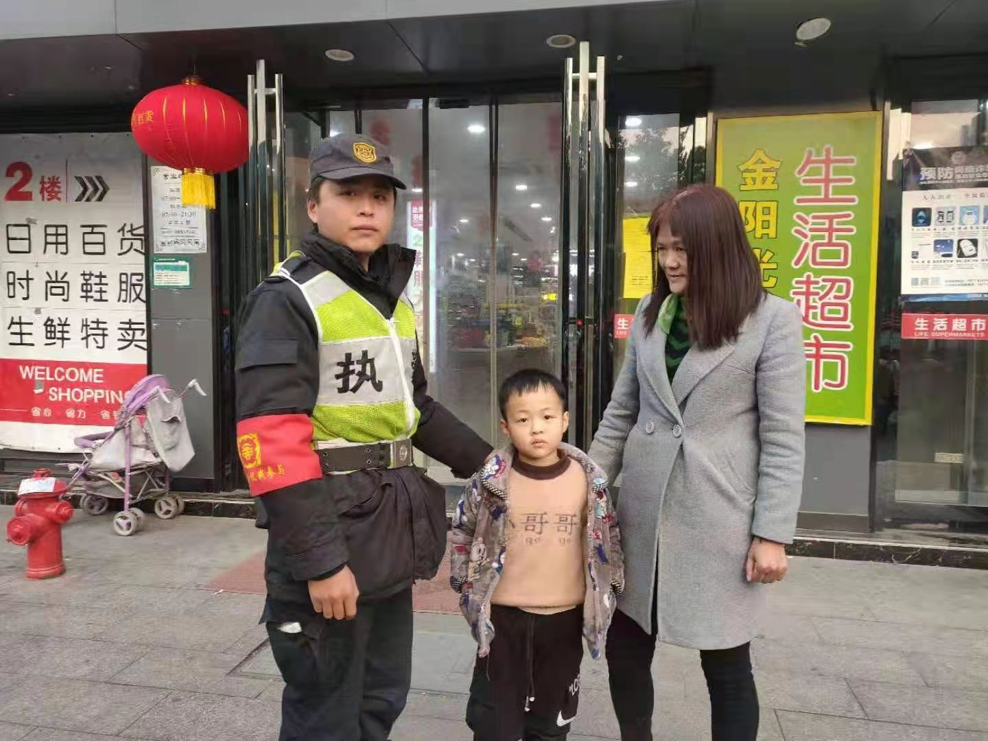 12月27日,宗保公司驻运河护校安园项目队员李冠峰、李响帮助走散男童找到家人。