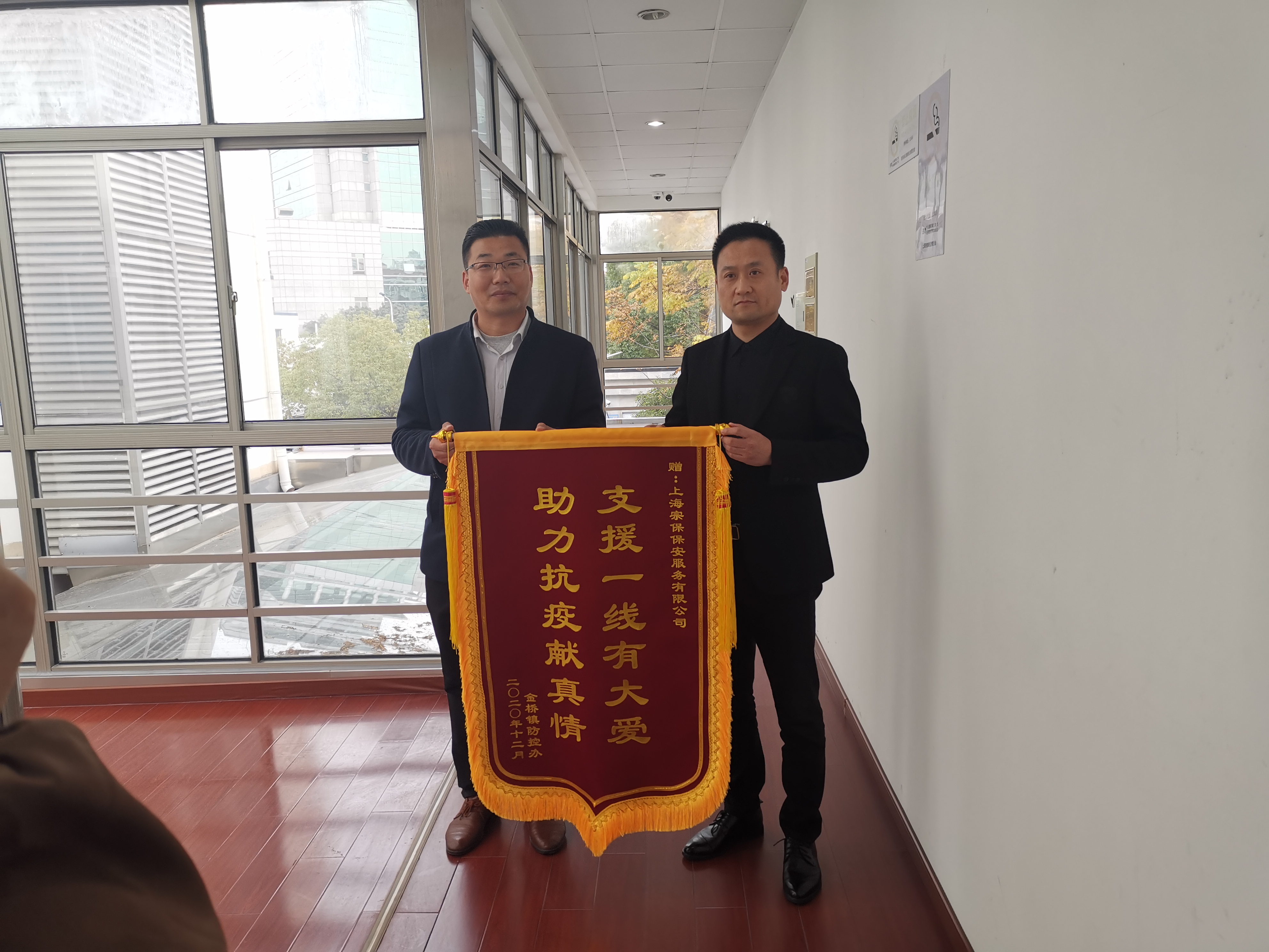12月23日,金桥镇稳定办主任张月民将一面绣有“支援一线有大爱,助力抗疫献真情”的锦旗送到宗保公司驻金桥项目组,对宗保公司全力支持镇疫情防控工作表示诚挚的感谢。
