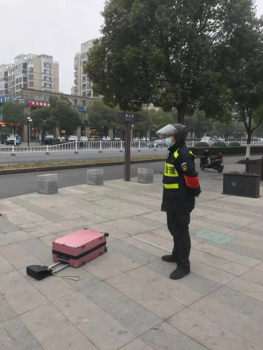 1月5日,民泰公司驻东湖市容项目队员李文雨帮忙看管遗落物品。