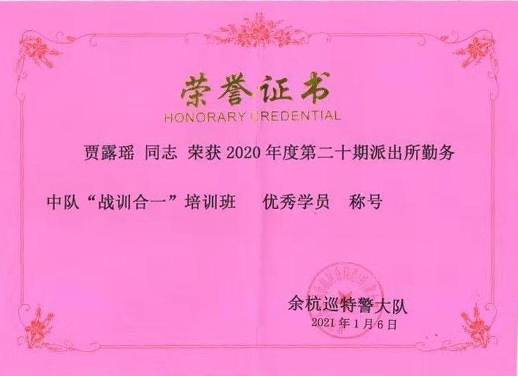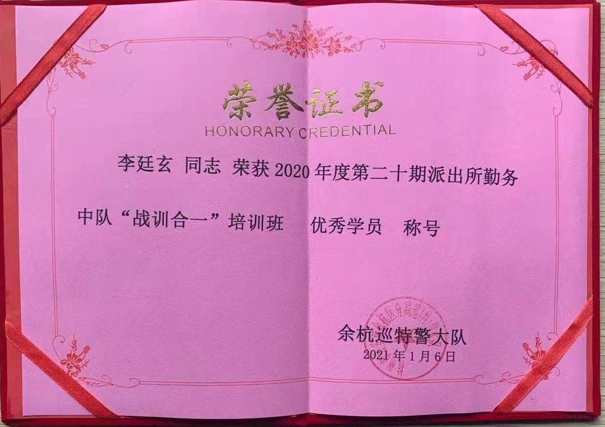 1月6日,浙江民泰驻星桥派出所和五常派出所项目的2名队员在“战训合一”培训中喜获佳绩。