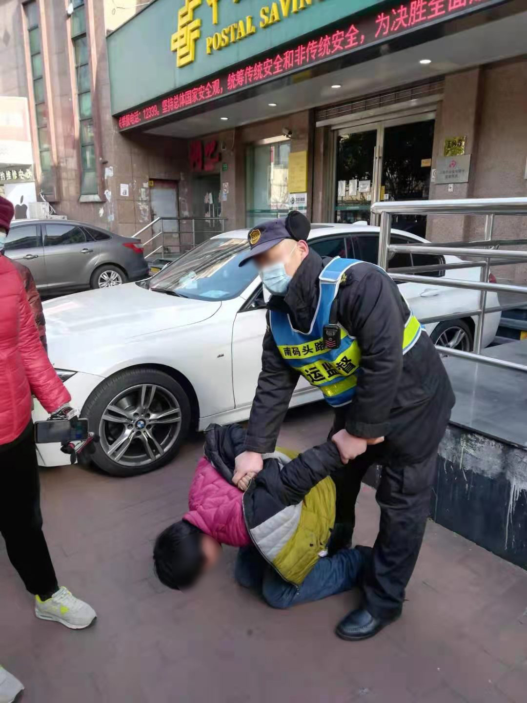 当日9:00左右,刘昆、宿大龙在浦三路185号巡查时,遇到一市民求助,称自己的棉衣和手机被偷了。通过当事人的描述,两名队员判断嫌疑人应该就在附近,连续三次拨通当事人提供的手机号码。同时,发现一名形迹可疑人员,三次拿出手机挂断,因而锁定了嫌疑人。
