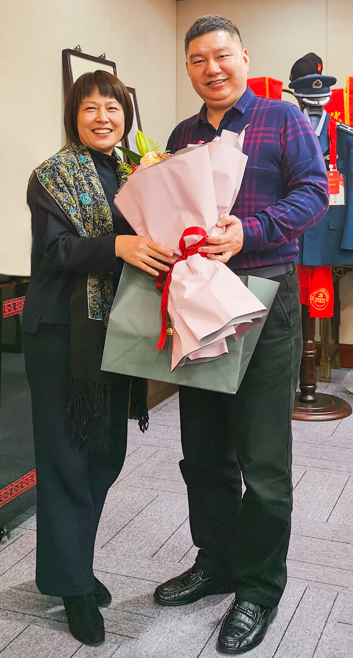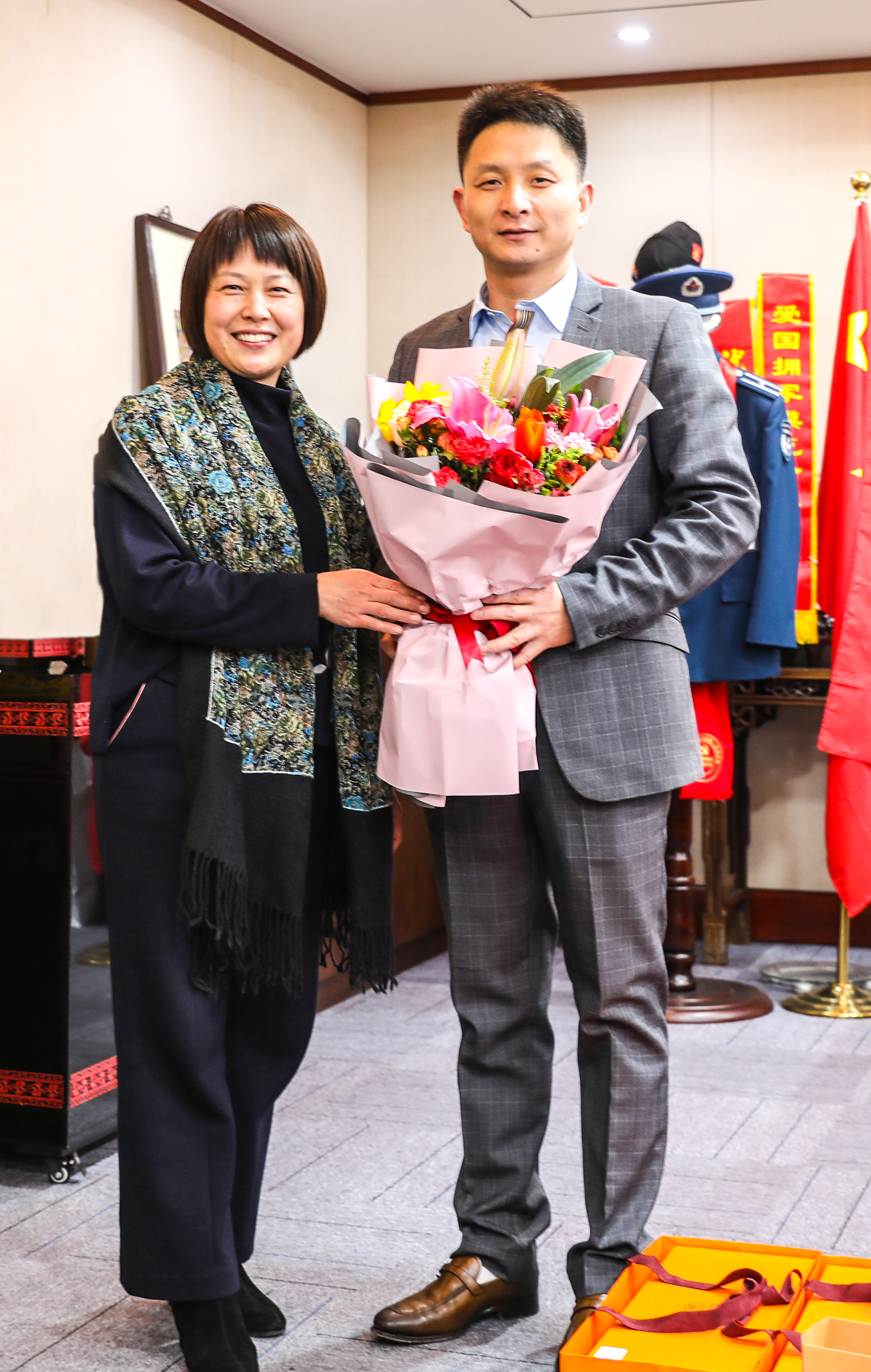 2020年是极不平凡的一年,宗保公司奉献担当、积极作为,勇担社会责任,关心支持社会公益事业。公司先后被评为获得上海市“爱国拥军模范单位”、浦东新区“爱国拥军模范单位”,被上海市退役军人事务局授予“退役不褪色,战‘疫’显本色”奖牌;宗保机动队被评为上海市“最美退役军人”;宗保公司创始人冯中保被评为浦东新区“最美退役军人”“爱国拥军模范个人”等荣誉,冯中保本人被聘授为浦东新区退役军人创业指导专家,一块块光荣牌,一只只奖杯,无不凝聚着各级领导的关心、关爱和支持,无不凝聚着全体员工的奉献、辛劳和汗水。庄沈芳副局长一行到公司慰问调研,并向公司获奖团体代表和个人赠送鲜花和纪念品,体现了上级领导对公司发展和进取的充分肯定。