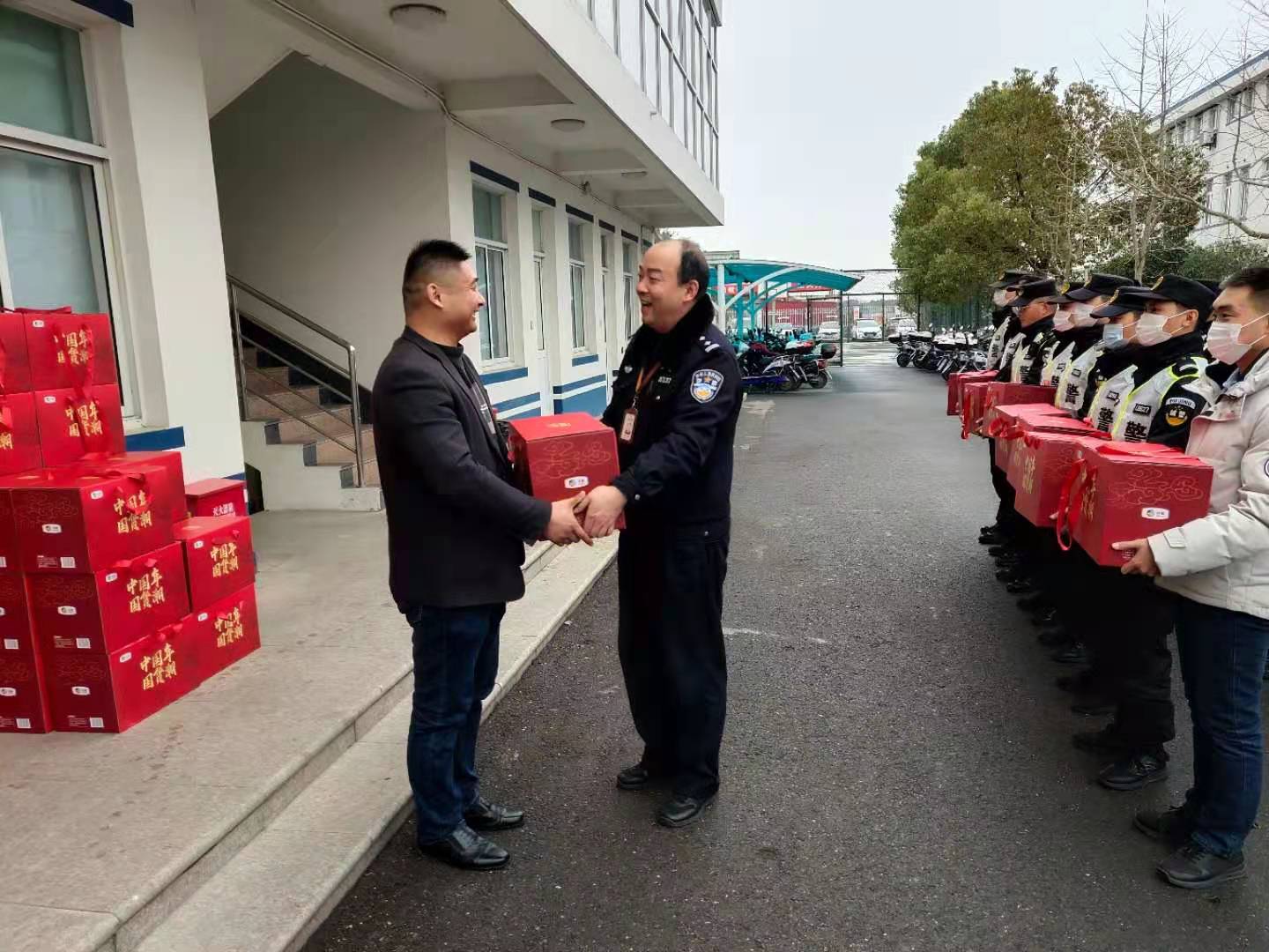新春佳节来临之际,周东派出所分管民警代表所领导慰问宗保公司驻周东辅警项目所有队员。 分管民警带着所领导的浓浓关怀之情,给队员们送上新春大礼包,感谢队员为辖区的平安建设作出的贡献。向春节期间不回家、留守在一线的队员致以敬意,并祝愿队员们新春快乐、身体健康、阖家幸福! 周东派出所领导的慰问,温暖着宗保队员的心,大家纷纷表示,节日期间将坚守岗位、扎实工作,全力配合维护好辖区平安稳定,确保辖区群众过一个欢乐祥和的新春佳节。 (供稿人:白玉蛟)