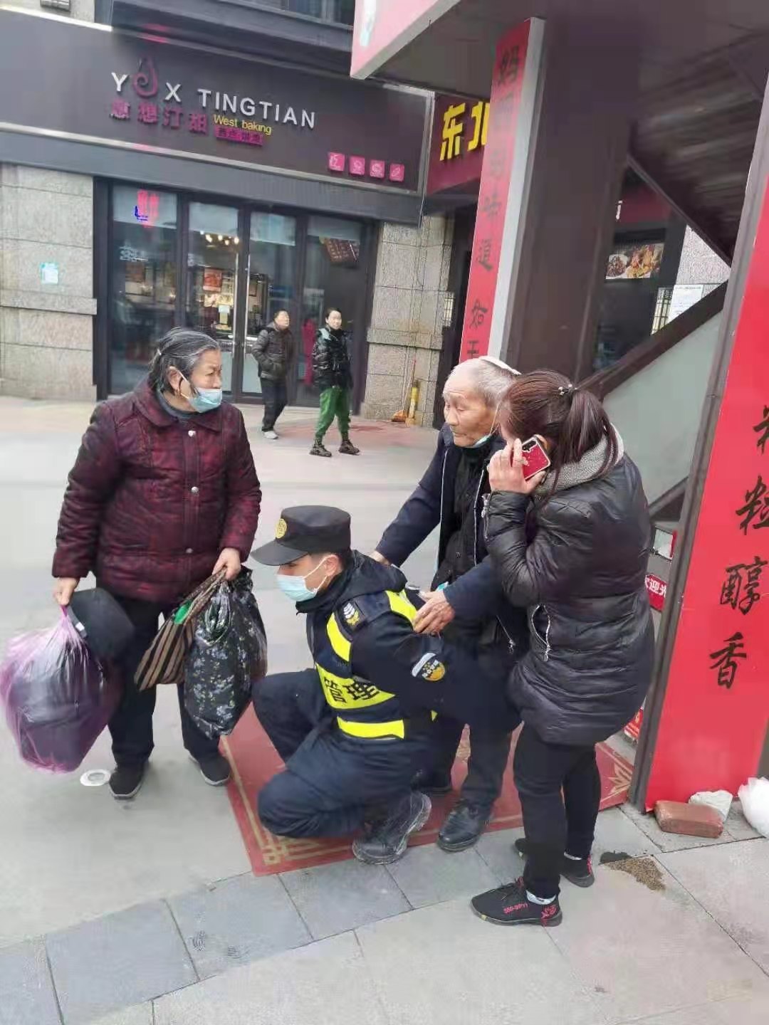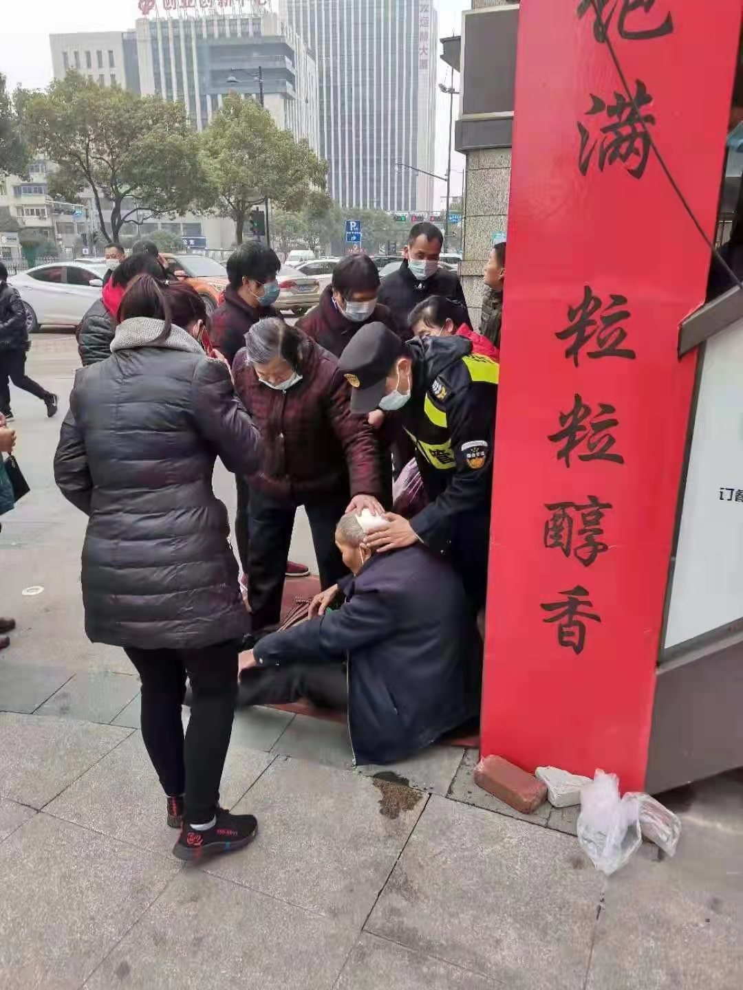 1月24日,浙江民泰驻东湖市容项目队员张艮振帮助摔伤大伯。