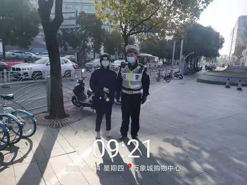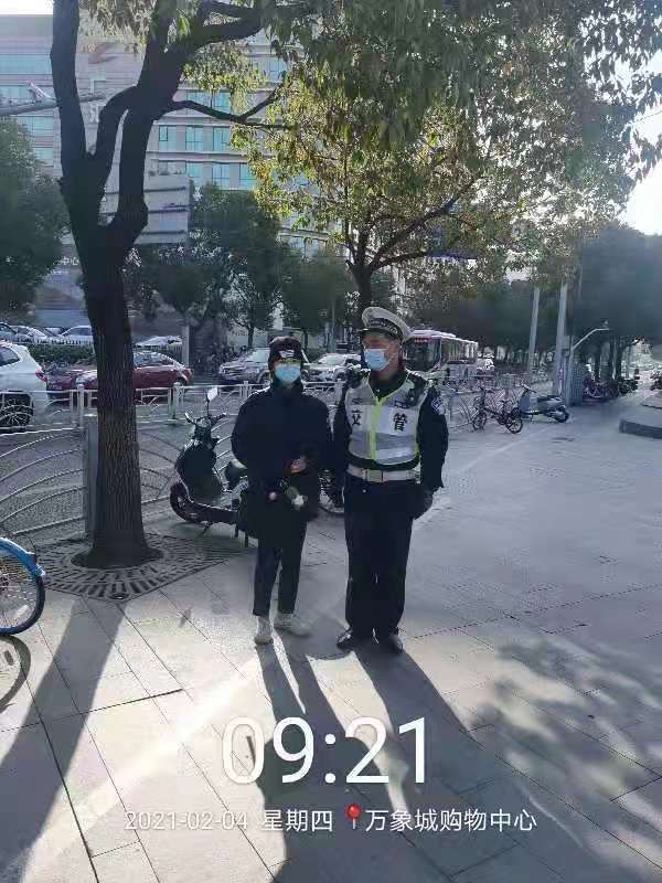2月3日,宗保公司驻吴中虹莘交管辅警项目队员王洪坤帮助市民找到丢失的手机。
