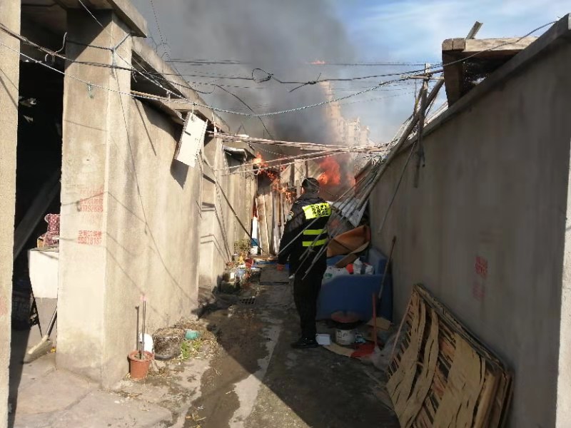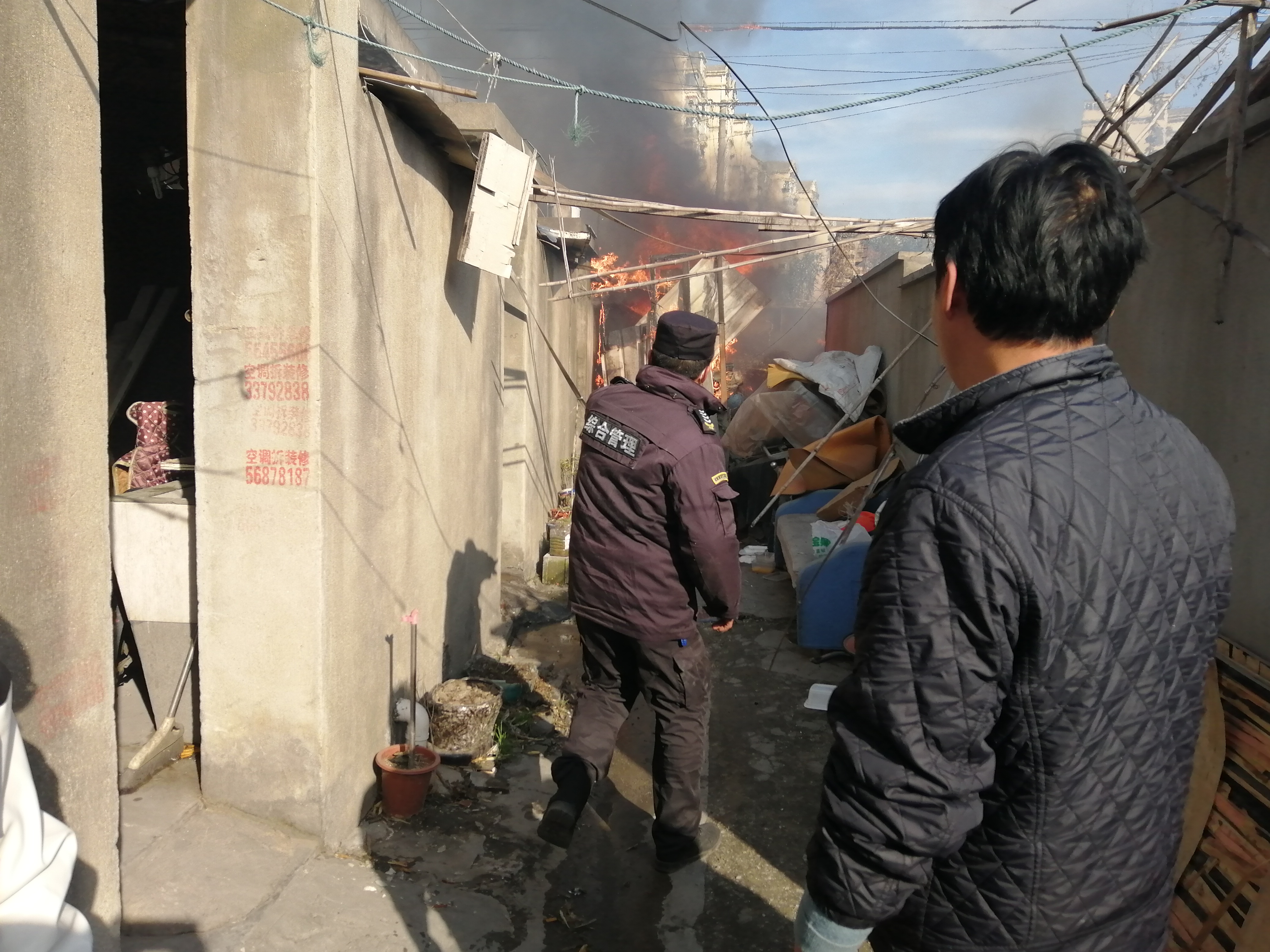 当天12:40,王如龙、王金齐、李旭龙三人巡逻至浦东北路与草高支路路口时,发现附近地块里有浓烟冒起,便赶紧将电瓶车停好,上前查看。原来是有人点火烧干草,但由于当时风大,把周围的干草引燃了,火势很快蔓延到了附近居民区。