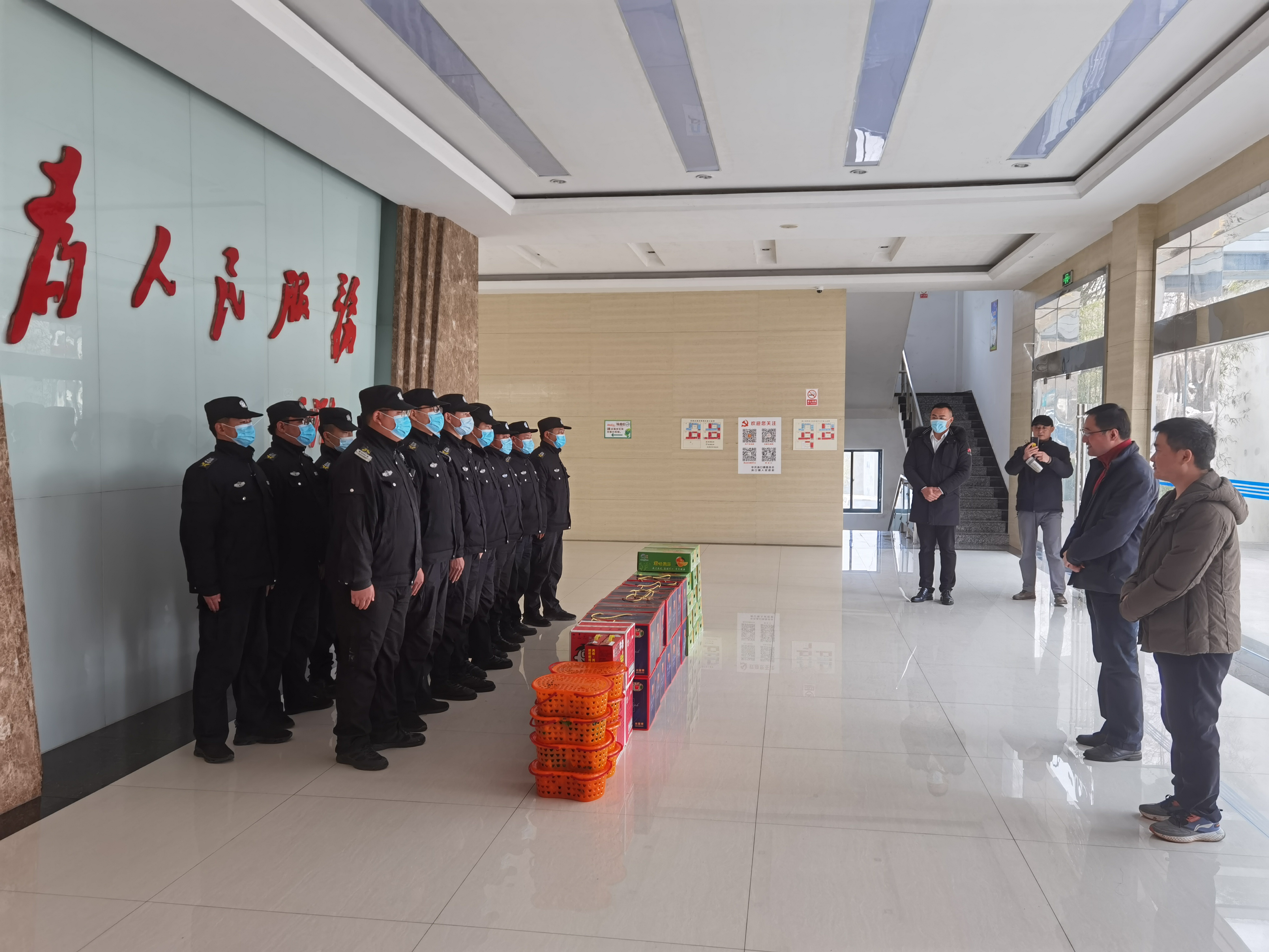 2月12日,汤口镇党委书记胡炜、党委委员杨鹏翔走访慰问宗保驻汤口市容项目坚守一线的员工。