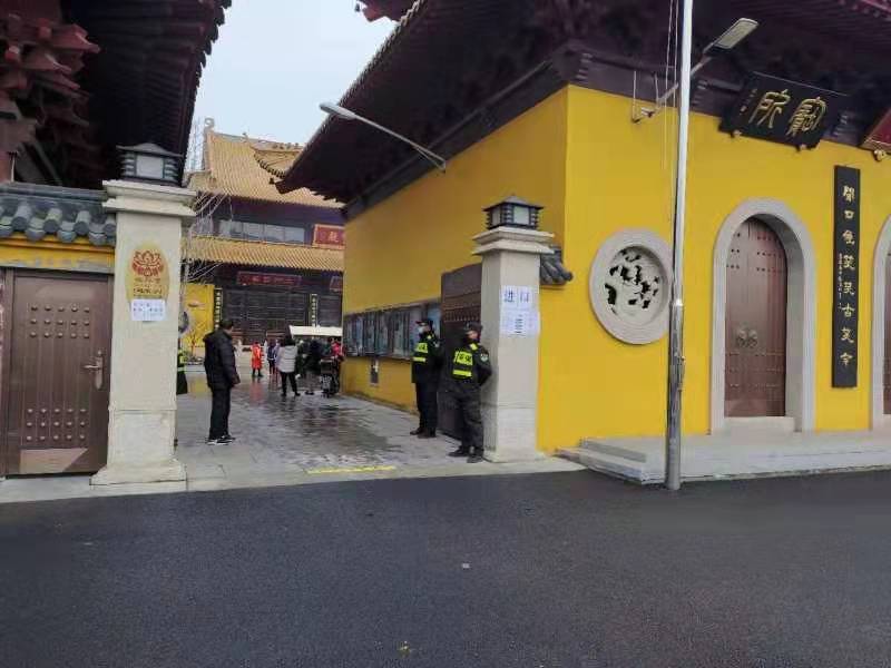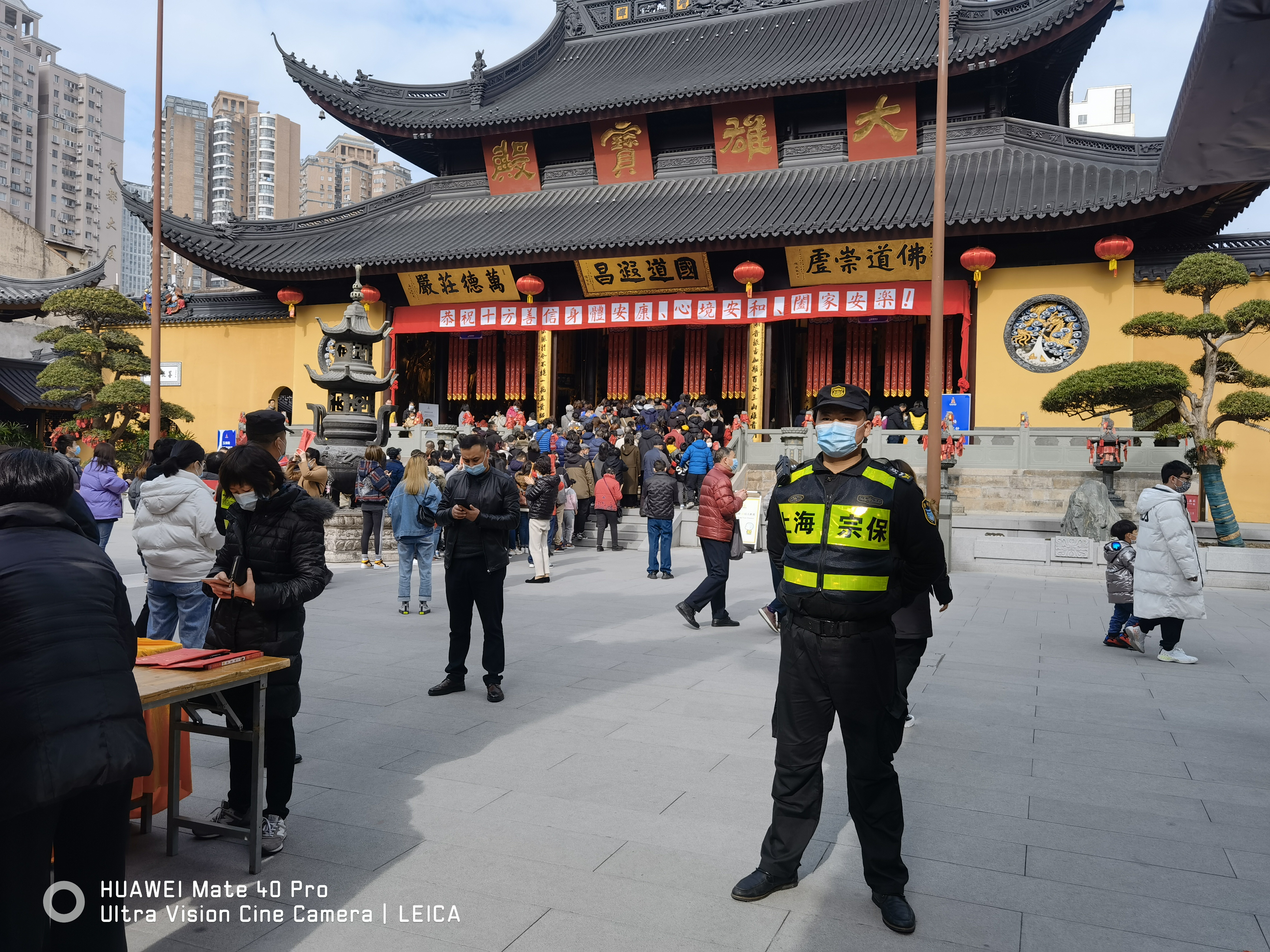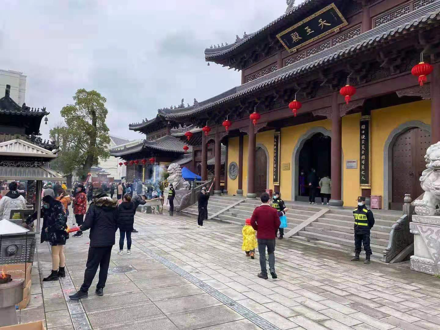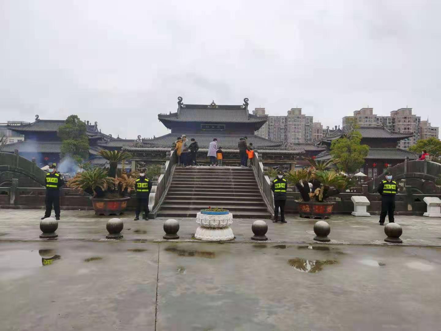春节期间,众多市民群众到名寺古刹烧香祈福。为确保寺庙祈福活动场所安全有序,除夕当天,宗保公司在公安民警和甲方领导的指导下,派出精干队员全力参与上海、杭州两地18座寺庙的秩序维护保障工作。