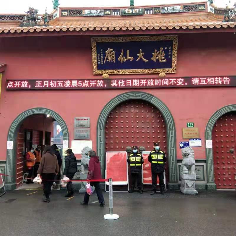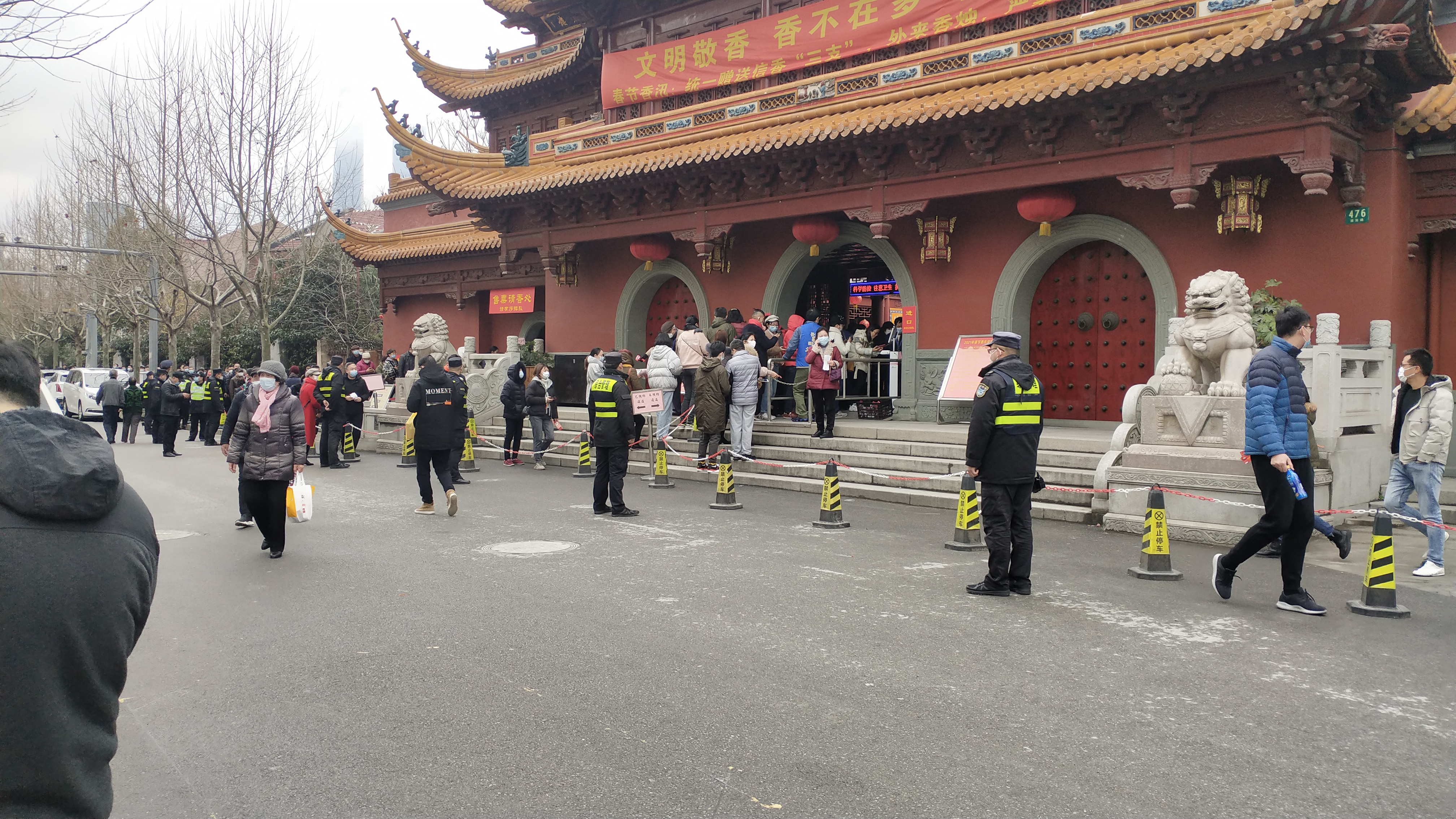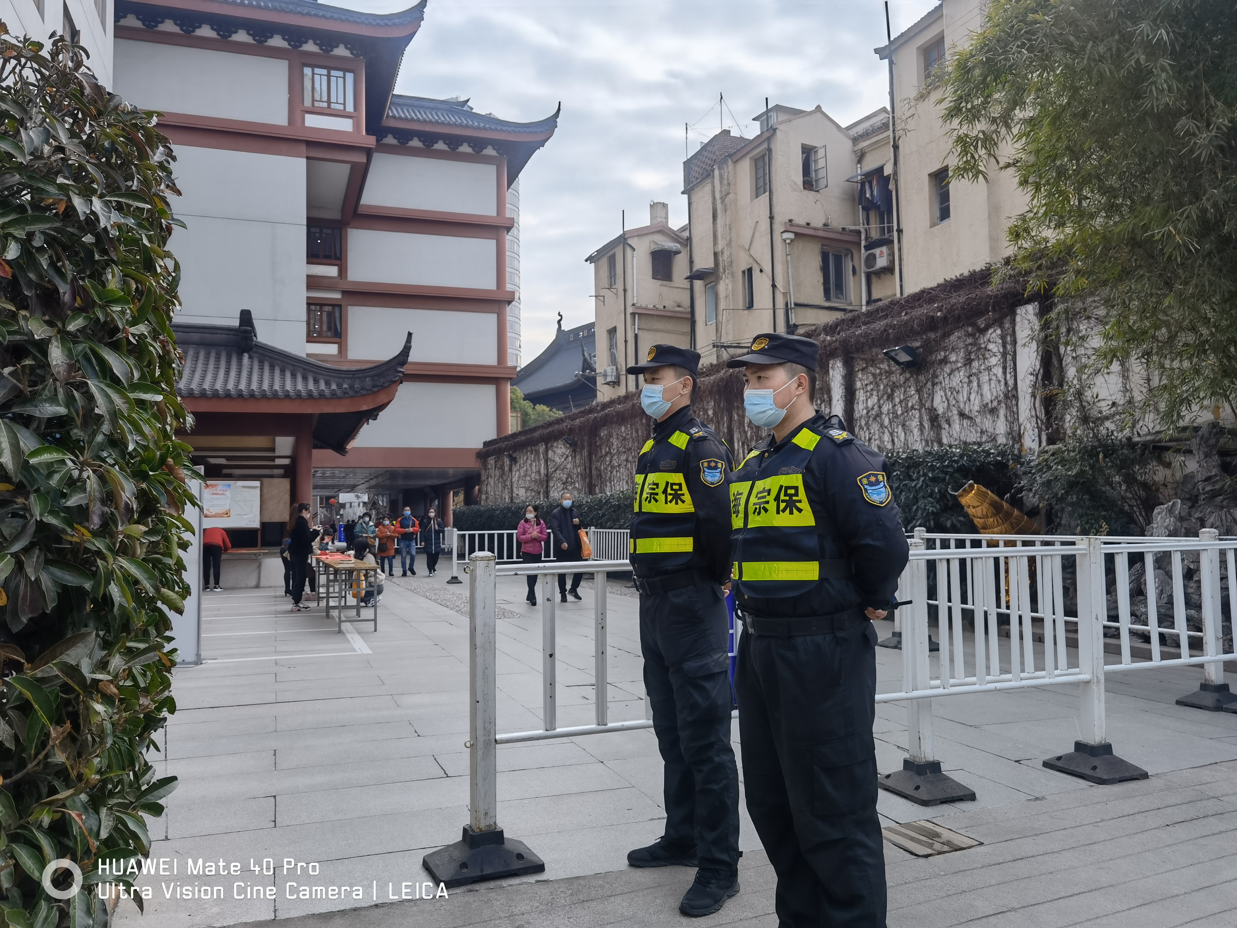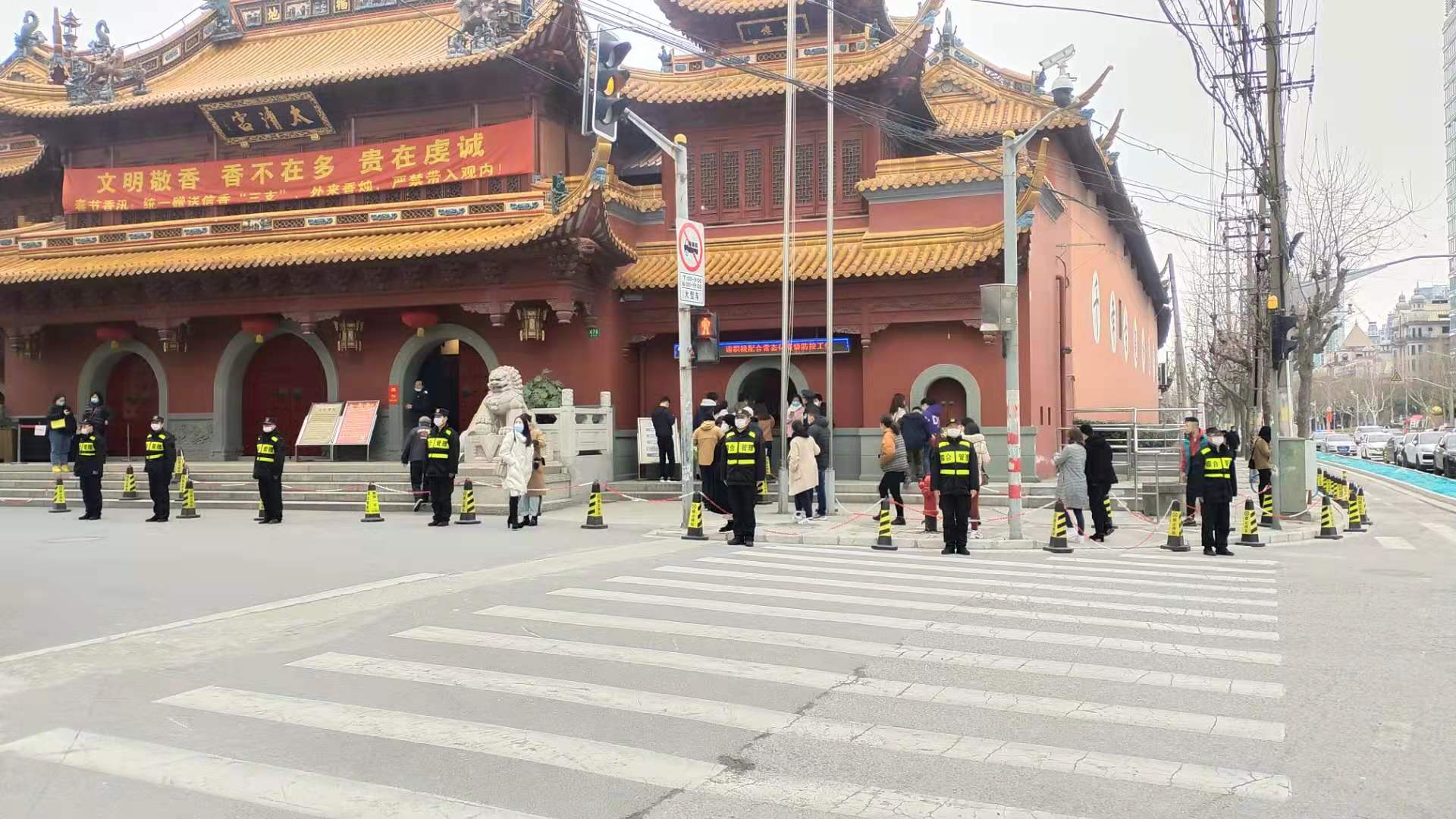 春节期间,众多市民群众到名寺古刹烧香祈福。为确保寺庙祈福活动场所安全有序,除夕当天,宗保公司在公安民警和甲方领导的指导下,派出精干队员全力参与上海、杭州两地18座寺庙的秩序维护保障工作。