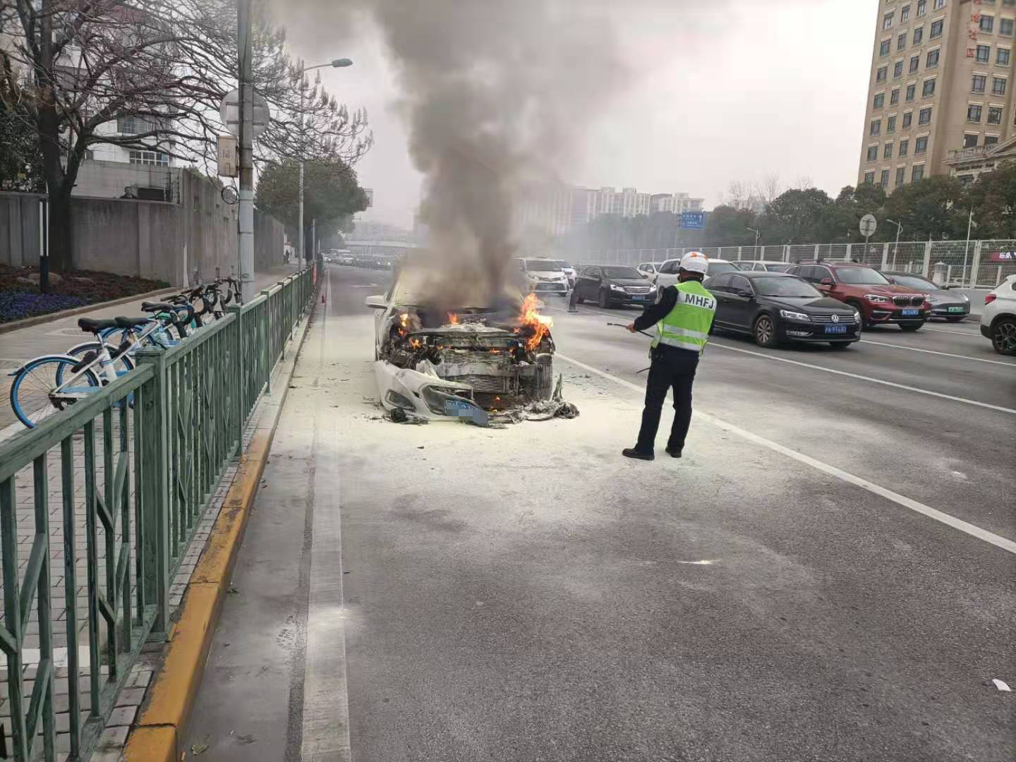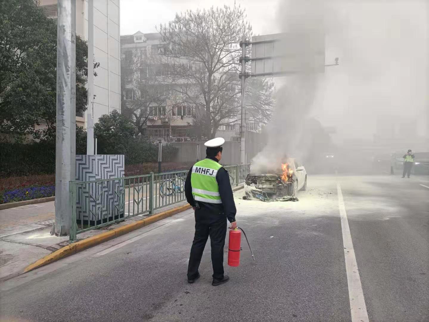 车辆追尾突自燃 妥善处置保畅通—虹桥交管辅警队员帮助自燃车辆灭火