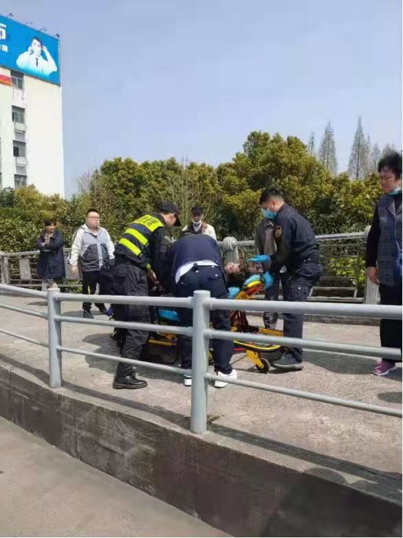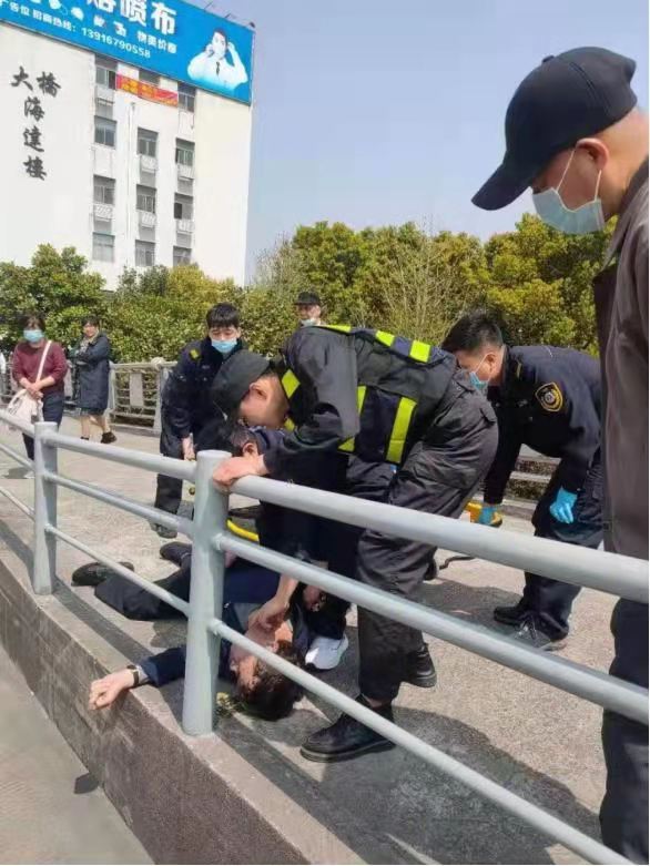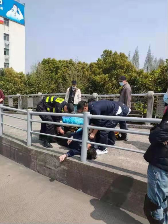 3月28日,李世耀和吕立志巡逻至上南路大桥时,发现一名中年男子倒在地上,便立即上前查看。该男子毫无意识、处于昏迷状态。情况紧急,李世耀立即拨打120急救电话和派出所内部电话,并向组长报告。同时,吕立志则帮助男子保持呼吸畅通,不停地与他说话,试图让他清醒过来。