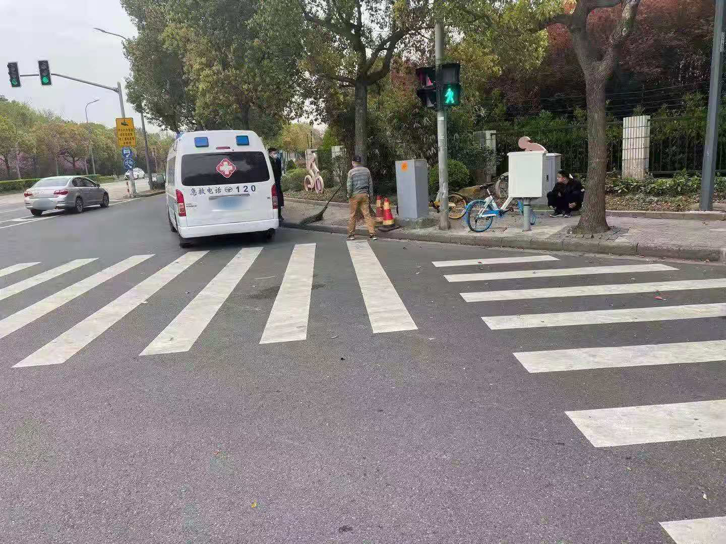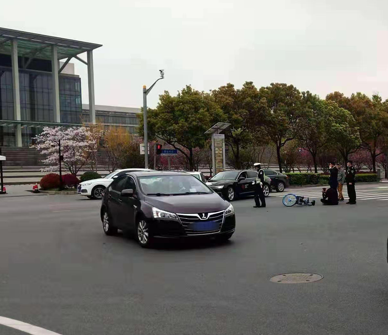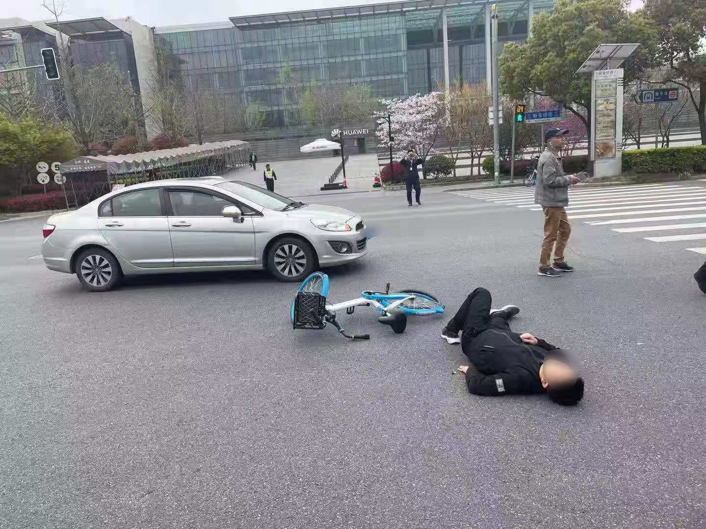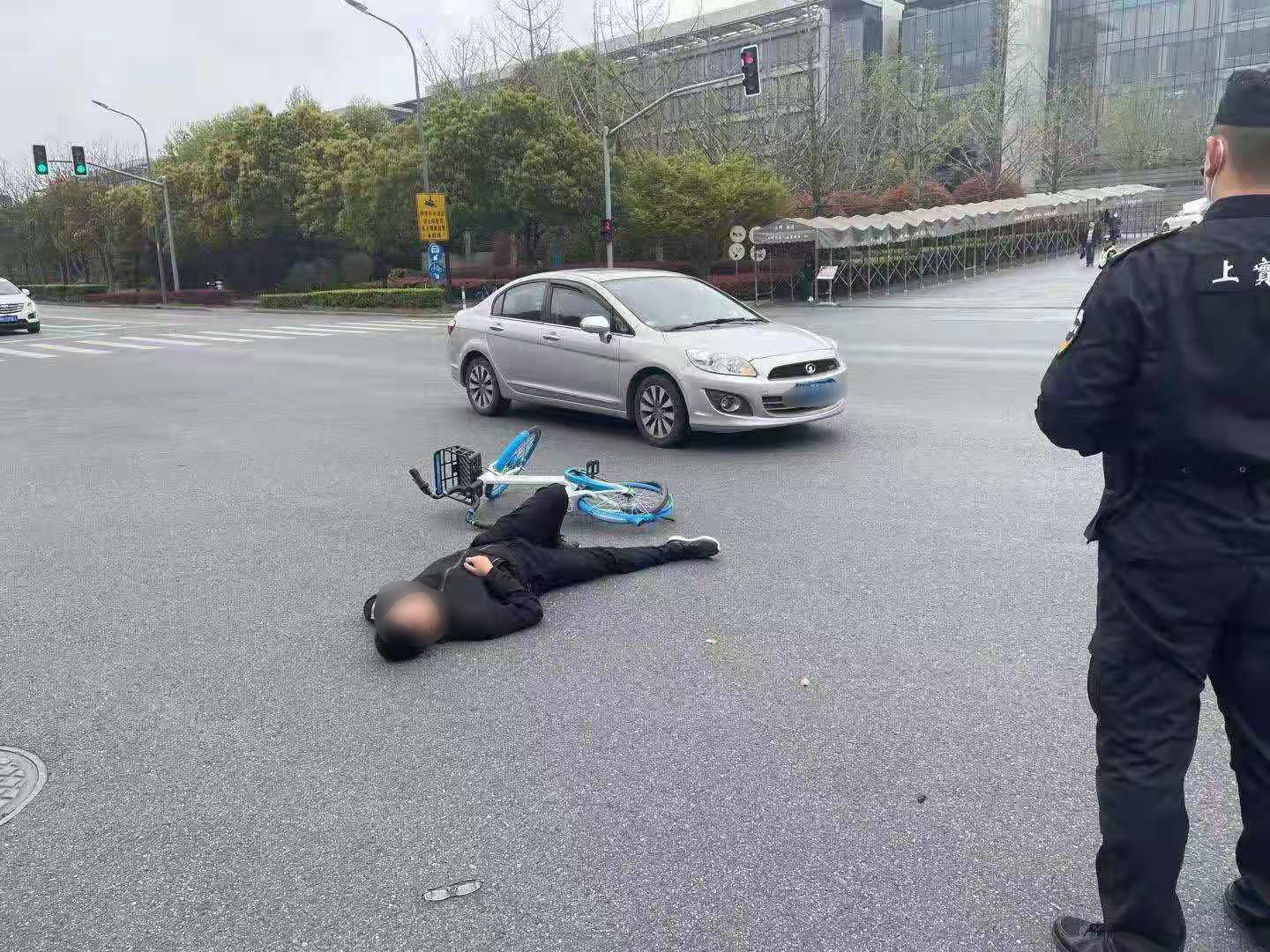 当天9:10左右,卢迎辉在新金桥路金苏路华为南门早高峰值勤时,遇到一起交通事故,一位骑单车的男子与行驶中的小轿车相撞,男子当即被撞出去三四米远,倒在地上抽搐不止。