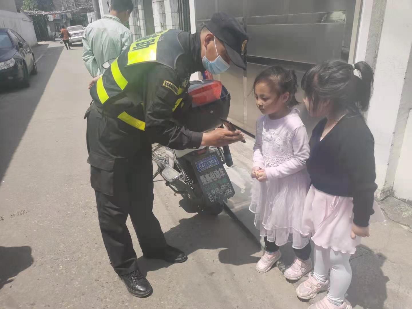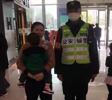4月3日,宗保公司驻周浦辅警项目队员耿茂张帮助走散儿童找到家人。