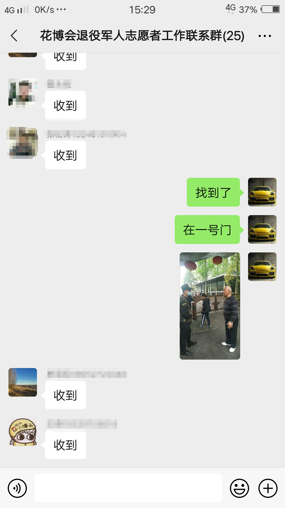 4月16日,公司花博会党员志愿服务队队员帮助找回走失老人。