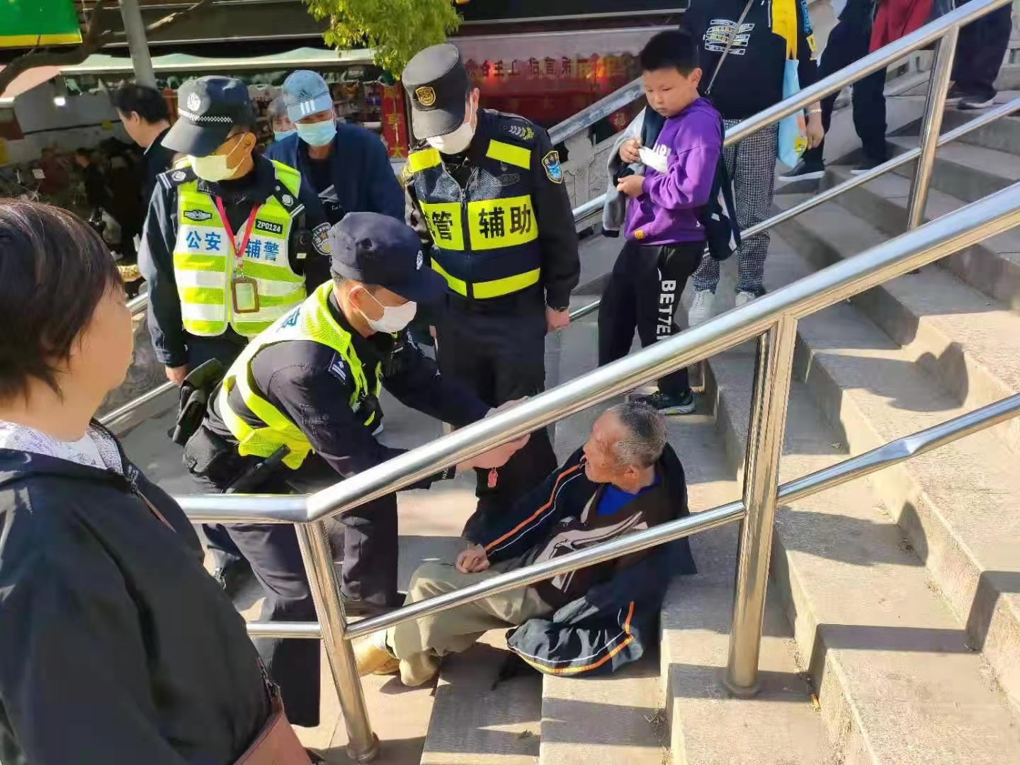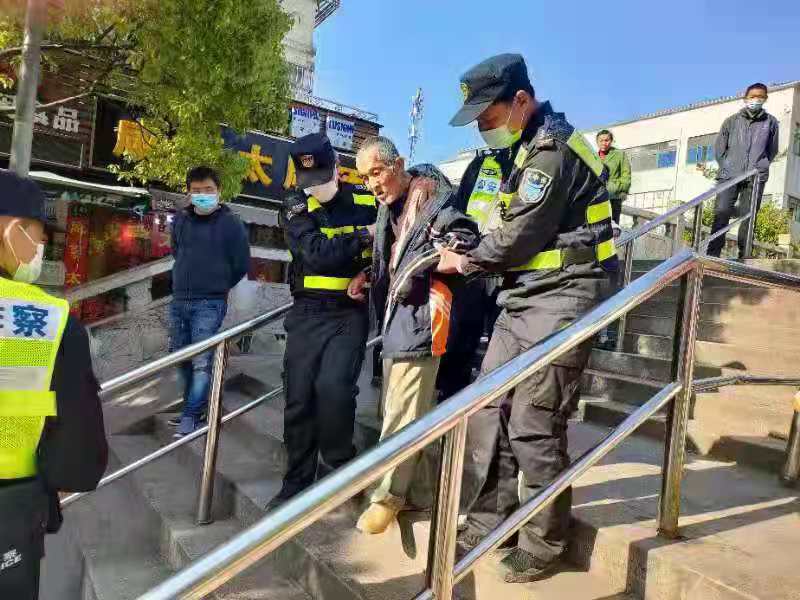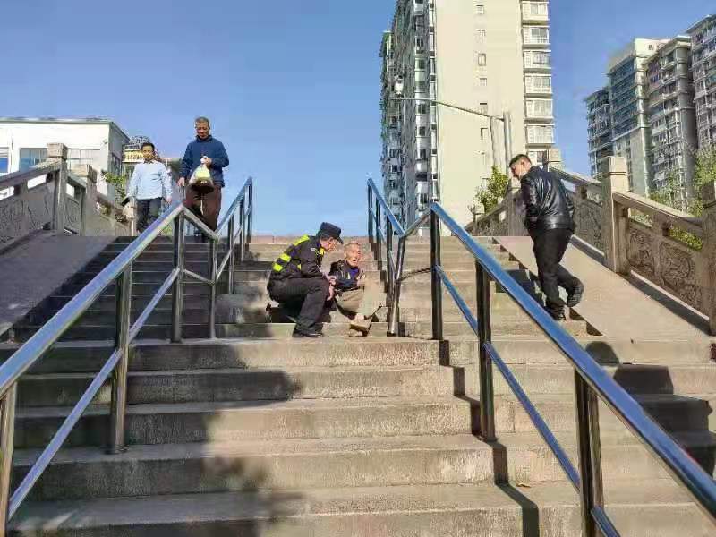 当日15:30,李彦兵巡逻至东南莱市场汤家木桥时,看到一位约八旬的老人躺坐在台阶上,就立即上前询问,老人用手比划着表示身体并无大碍。