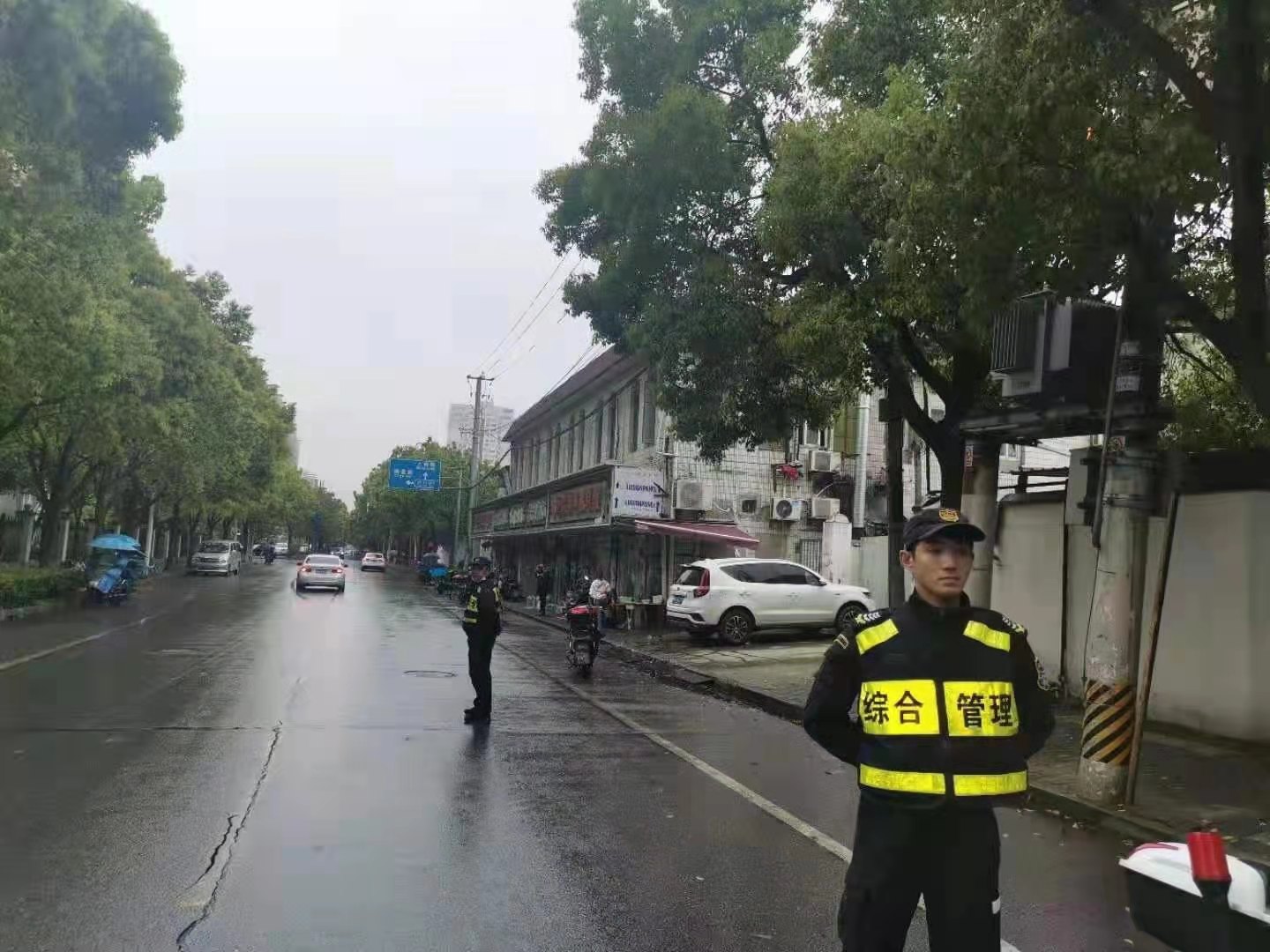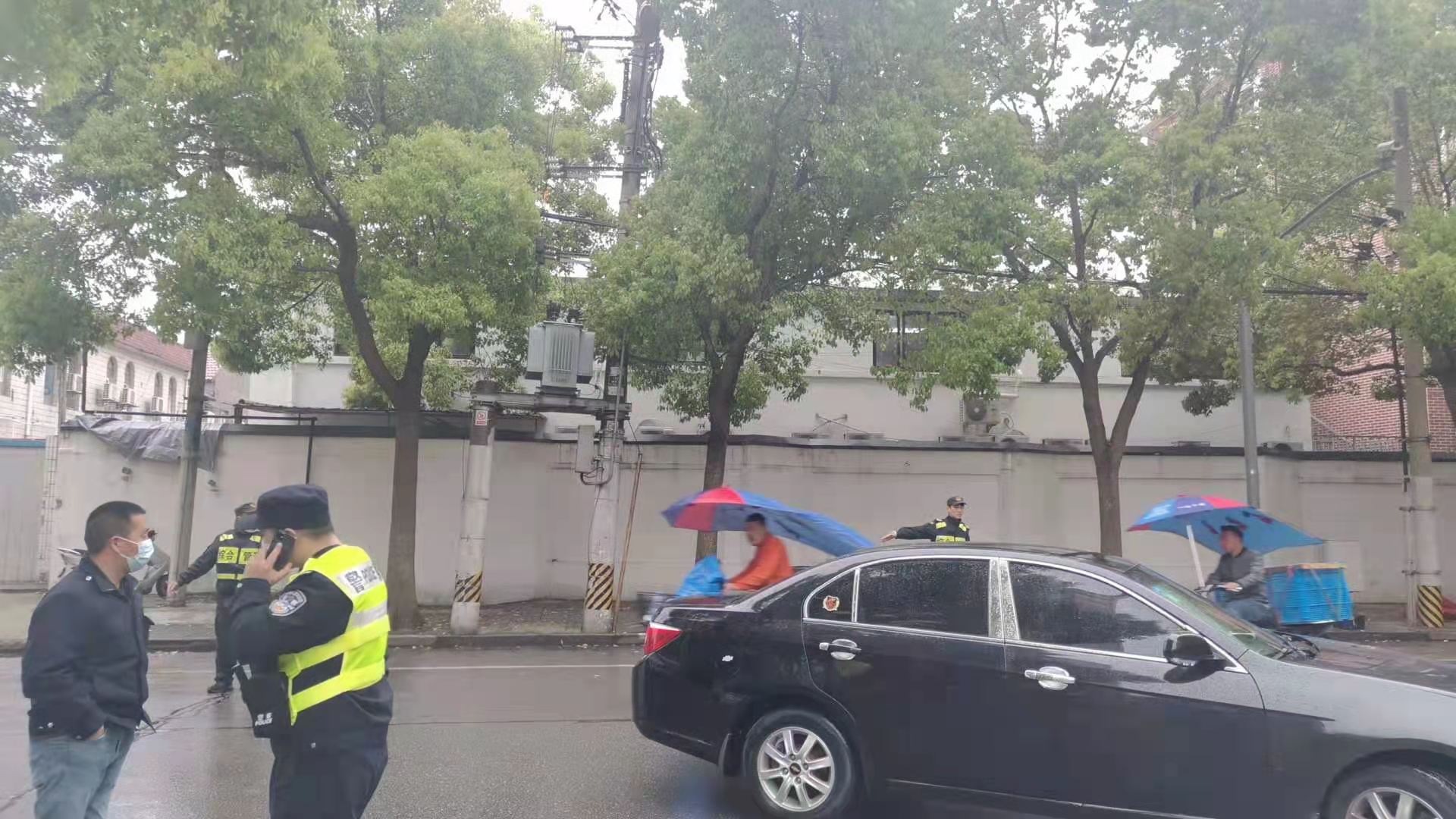4月11日,宗保公司驻三林市容项目队员李三沅积极协助消防人员和民警维护火灾现场交通秩序。