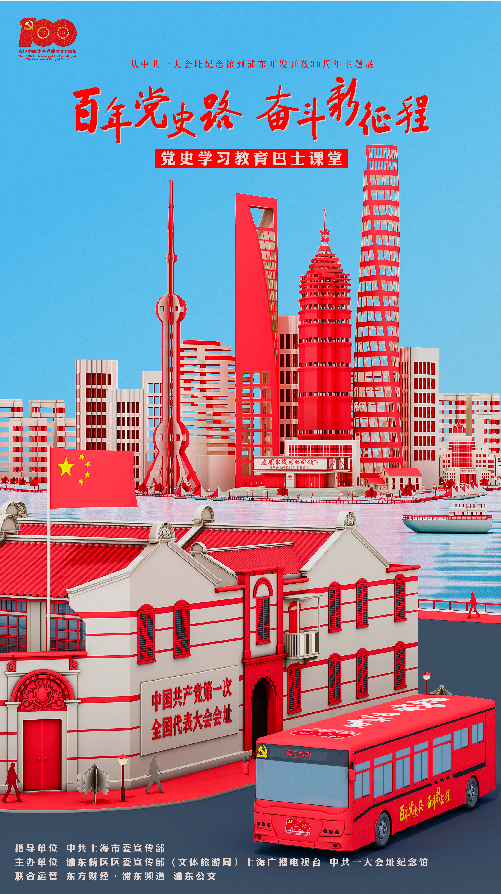 今年是中国共产党成立100周年,在市委宣传部的指导下,浦东新区在2020年“四史巴士课堂”成功运营的基础上,今天又推出党史学习教育巴士课堂。