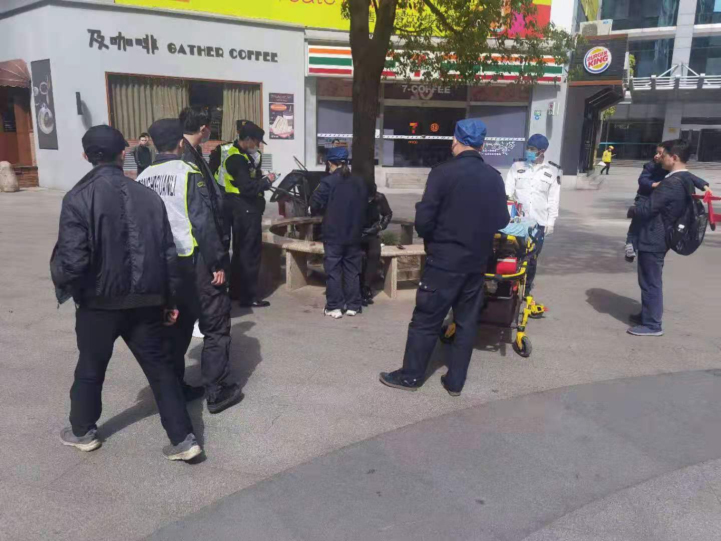 4月10日,宗保公司驻陆家嘴综合管理项目队员救助晕倒男子。