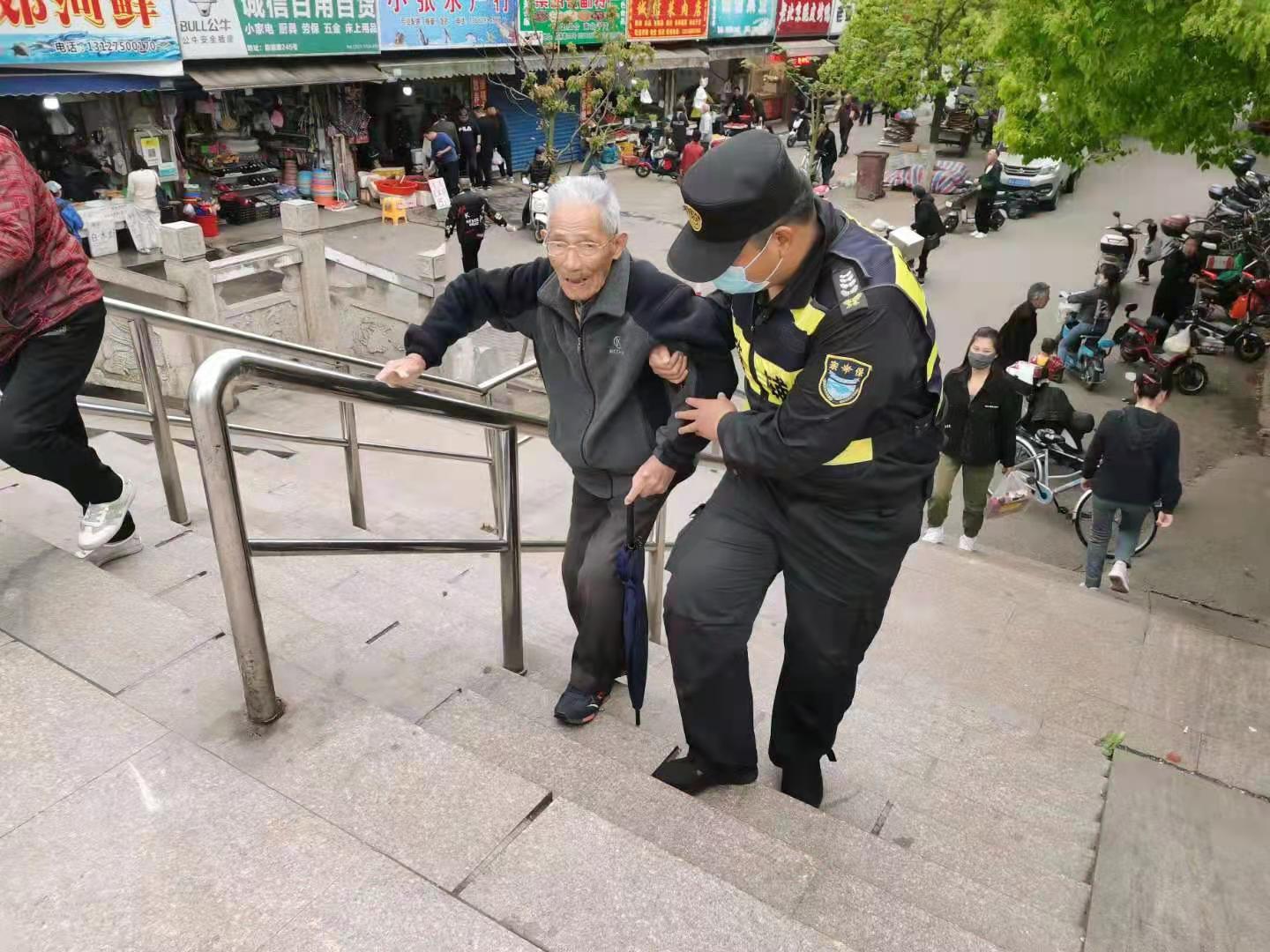 当日15:30左右,王楷迪在汤家木桥巡逻时,看到一位年约八旬、行动不便步履缓慢的老人正准备过天桥,老人身旁没有人陪同。