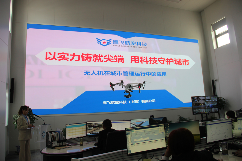 4月28日,浦东新区无人机在城市运行管理领域的应用座谈会在周浦镇城市运行管理中心召开,鹰飞航空公司参加会议并对无人机在城市运行管理领域的应用进行演示介绍。
