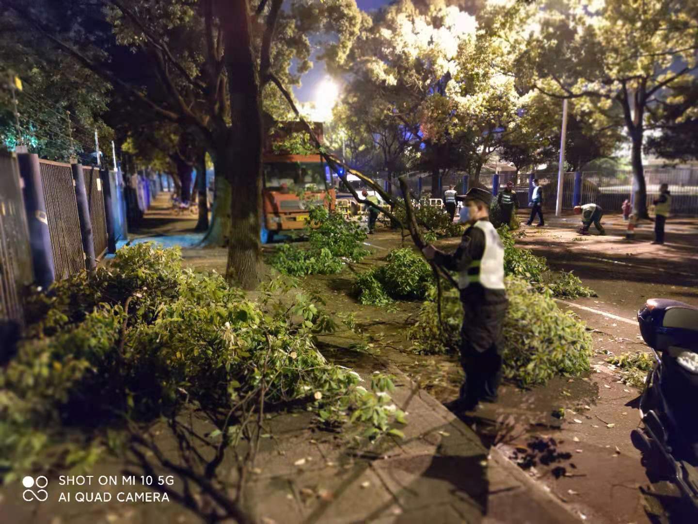 为保证过往车辆和行人的安全,避免影响过往车辆和行人的通行,杨俊国按照民警的指示,组织队员在现场设置醒目警示标志,防止过往车辆发生碰擦,造成二次事故。紧接着,组织队员清理路面树杈,与随后赶到现场的路障清理工人一道,奋战了约1个小时,终于将路面的树杈全部清理干净。