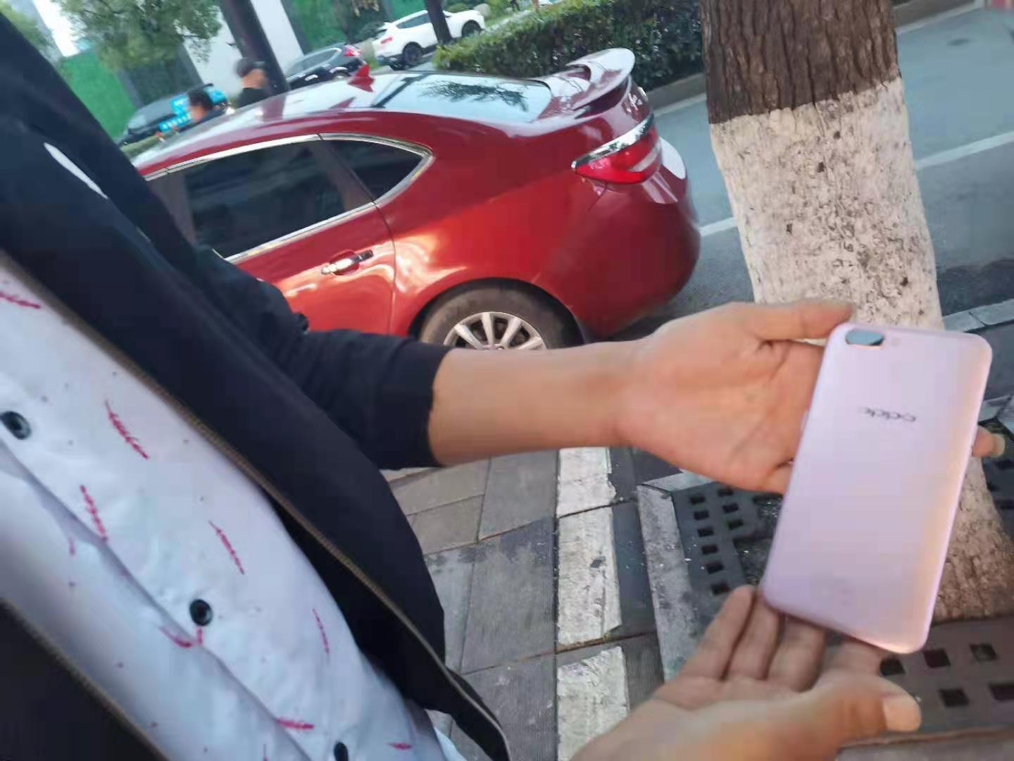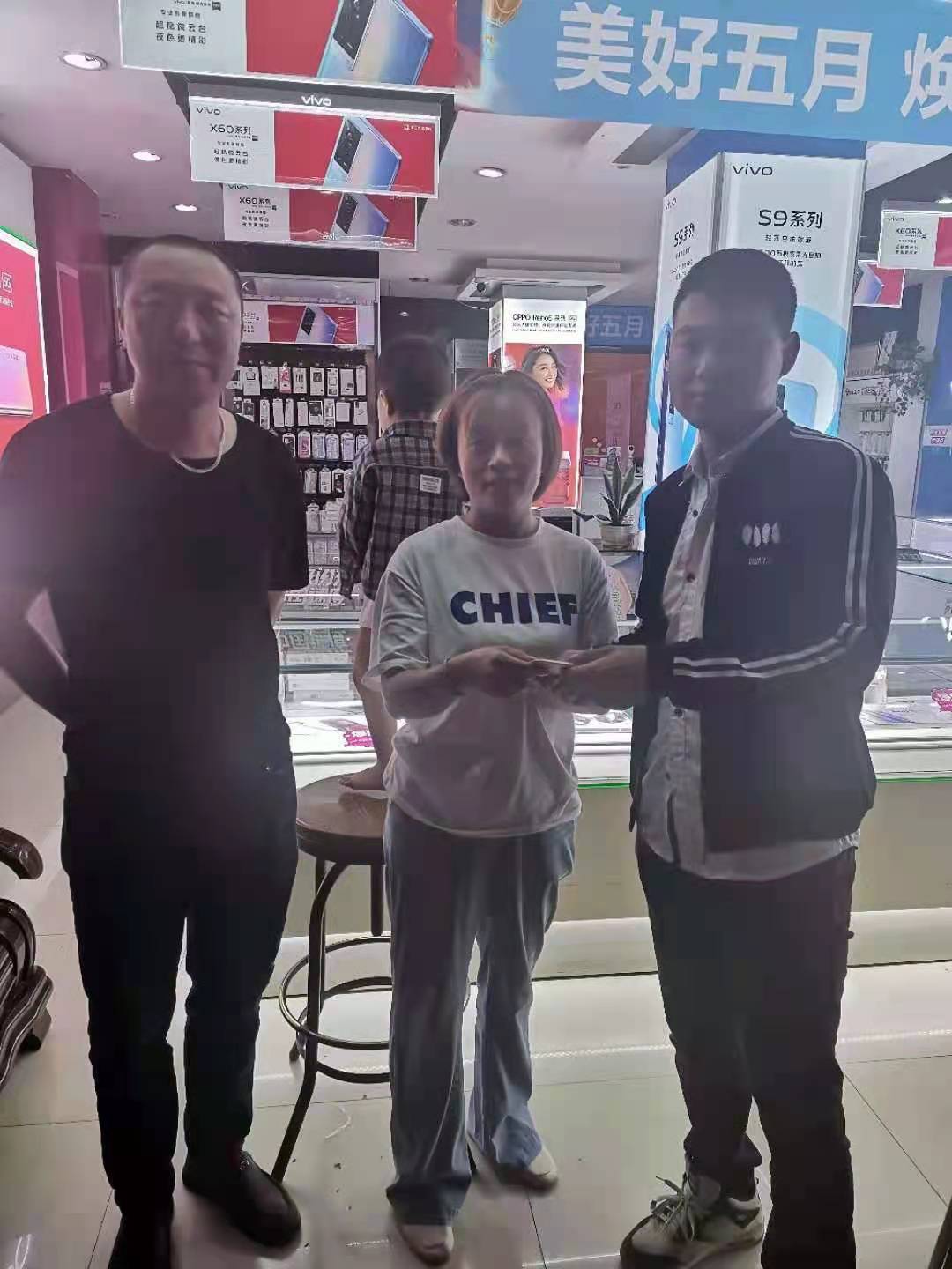 30多分钟过去了,仍未见失主前来寻找。正当两人准备将手机交到派出所时,一女子打来电话说自己是失主,是附近vivo手机店的店主,但因店里无人看店,暂时无法走开。得知这一情况,两人便主动提出可以将手机送过去。