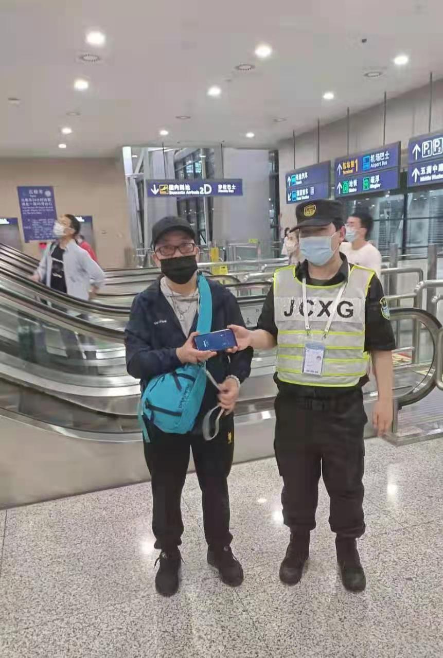 5月23日,宗保公司驻浦东机场项目队员何其龙捡到背包归还失主,受到称赞。