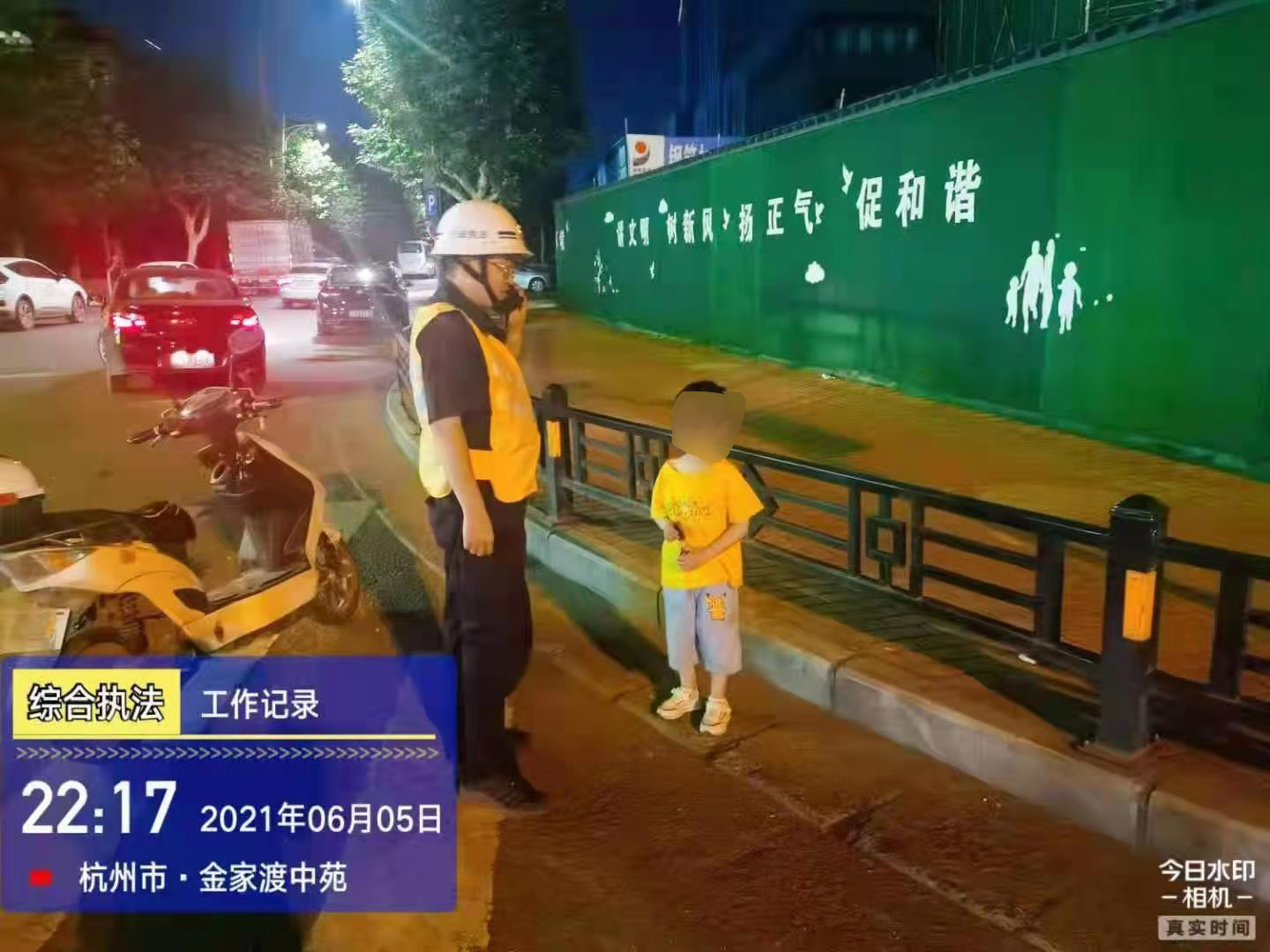 6月5日,浙江民泰驻良渚物流项目队员孙明峰、李军军帮助走散男童找到家人。