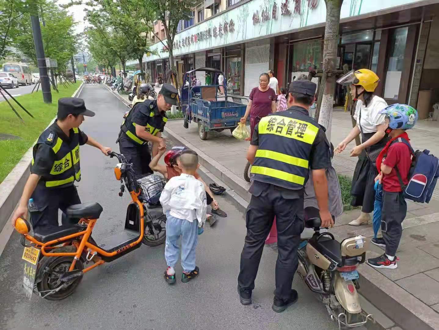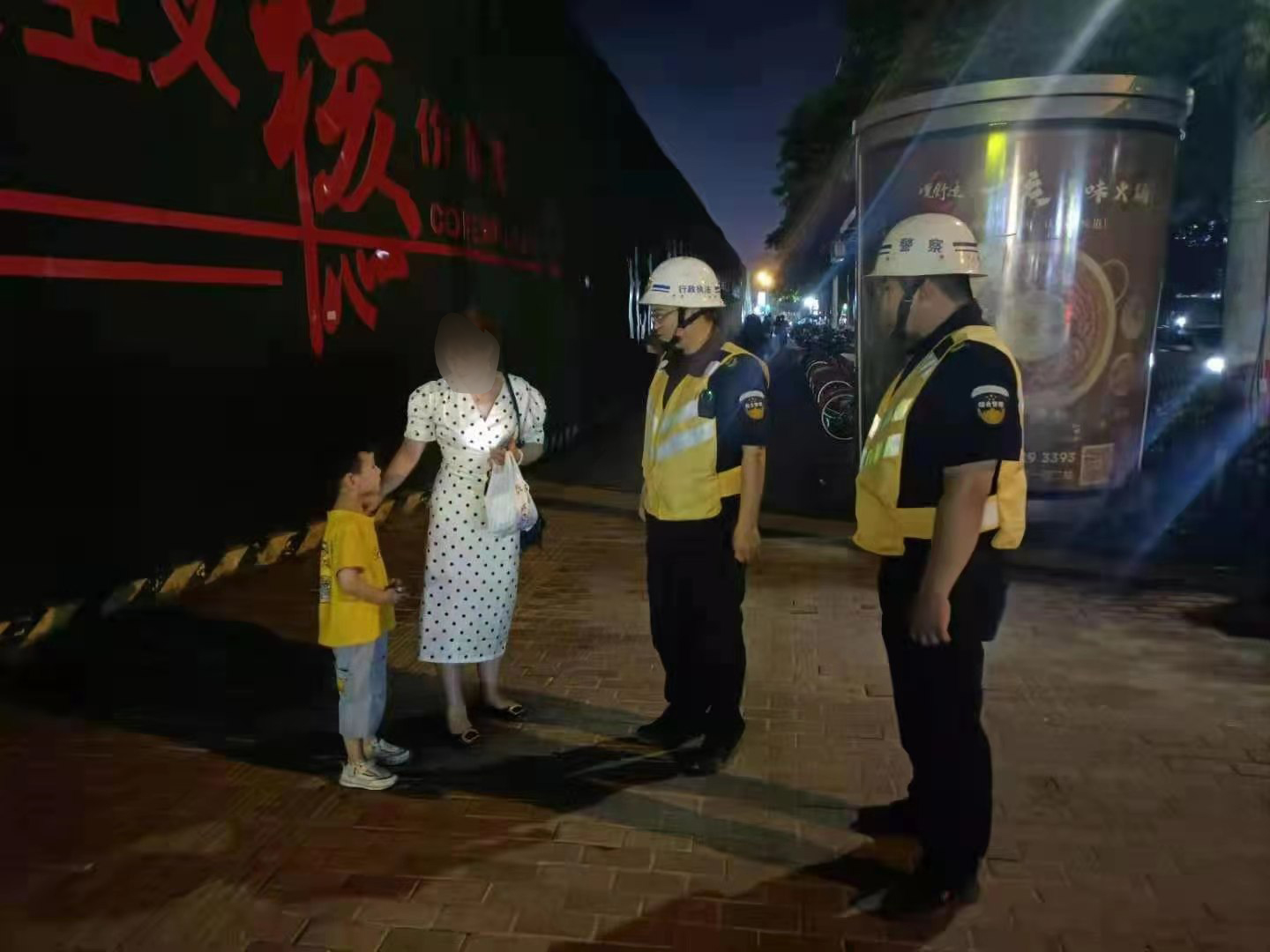 两名队员随即上前询问,原来小男孩找不到妈妈了。依据其描述,队员确认小男孩与妈妈走散的时间不长,便赶紧联系其他队员在四周帮忙寻找。
