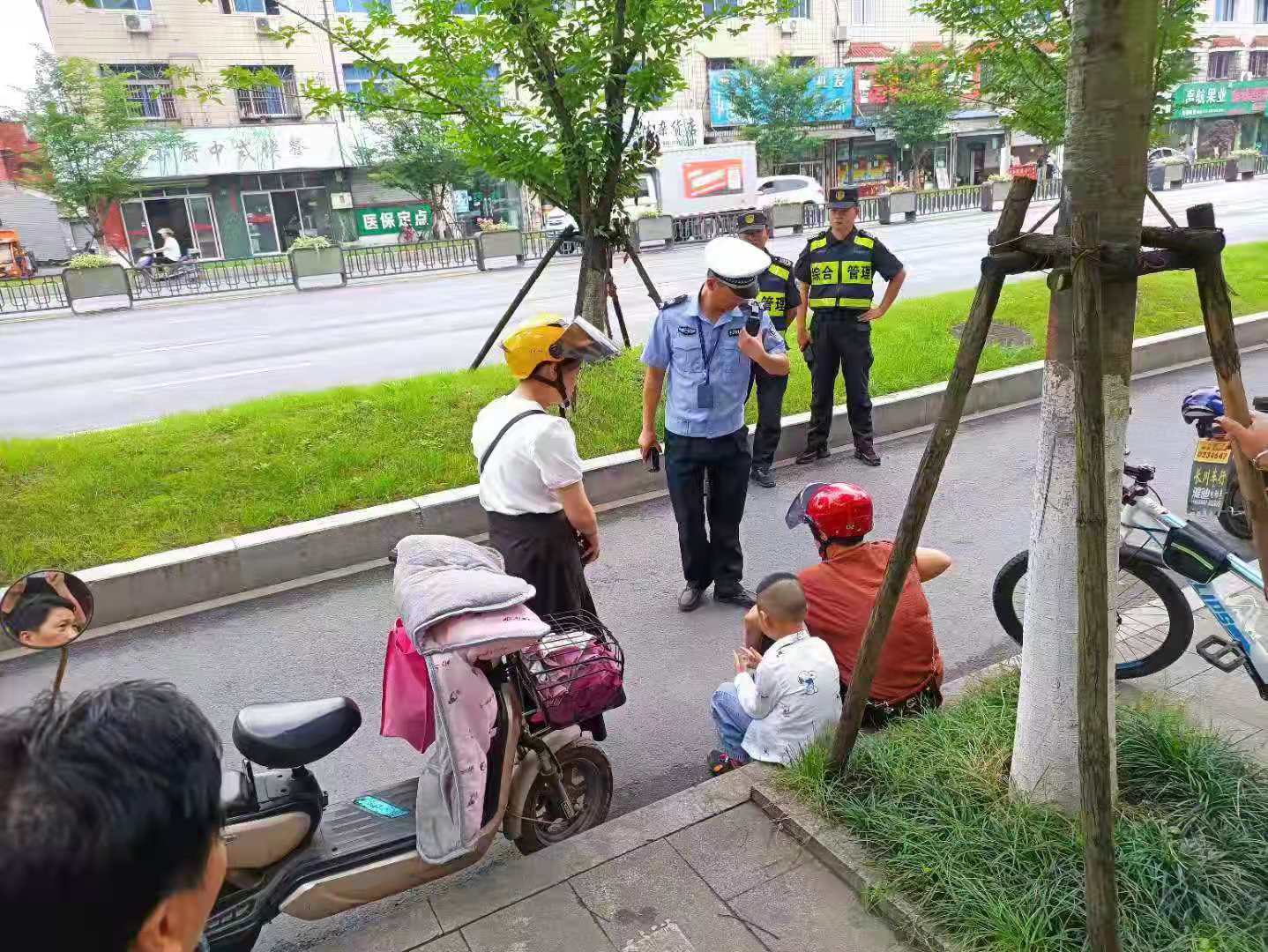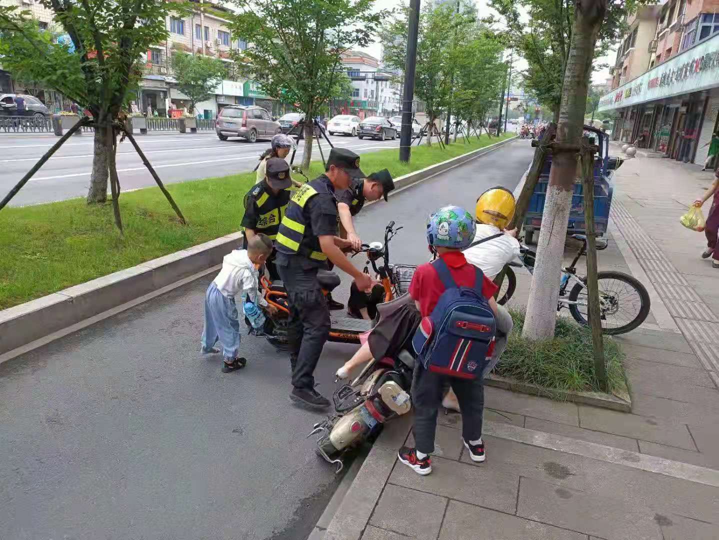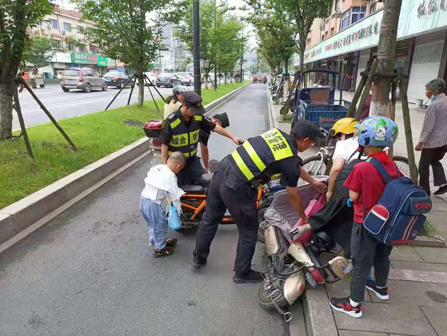 当日8:05,正值学生上学高峰时间段,李川、朱鹏旭、强志杨3人沿着中泰路由西向东巡逻时,突然看到前方两辆电瓶车追尾相撞,一位老人和电瓶车摔倒在地上。
