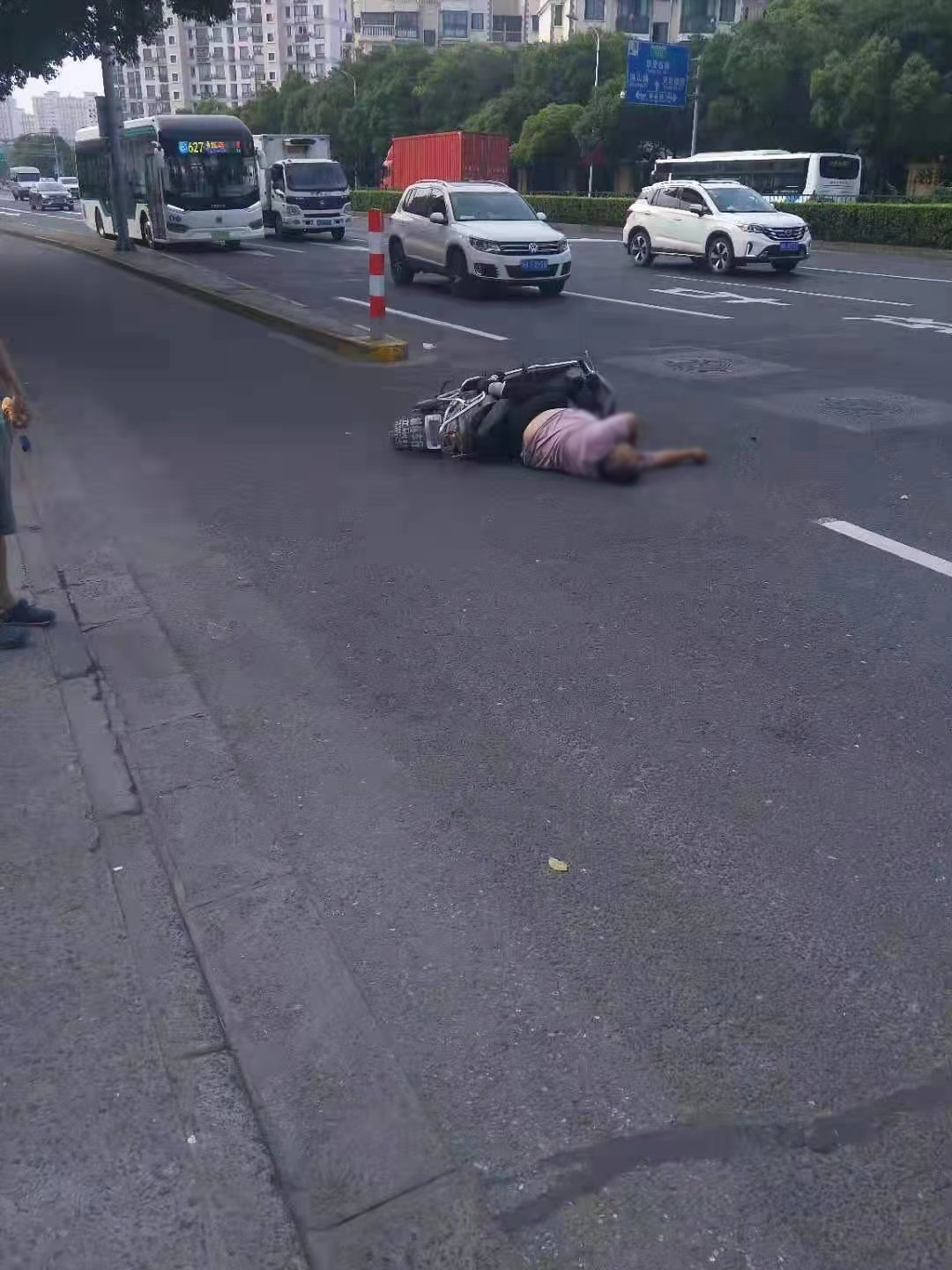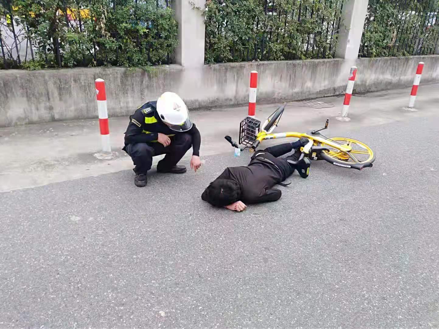 男子骑车突倒地 队员救助暖人心—三林市容项目队员救助骑车摔倒男子