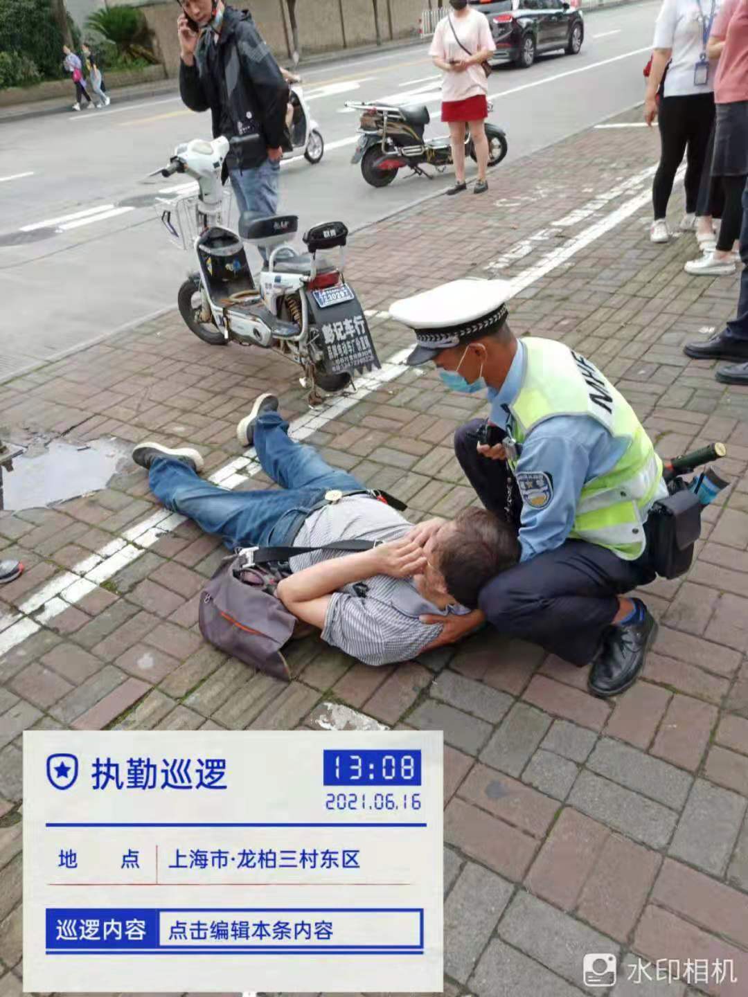 当天17:02,张正顺和杨桂平在沪南公路六奉公路交叉路口协助交警指挥交通时,看到一名男子倒在马路边,呕吐不止。