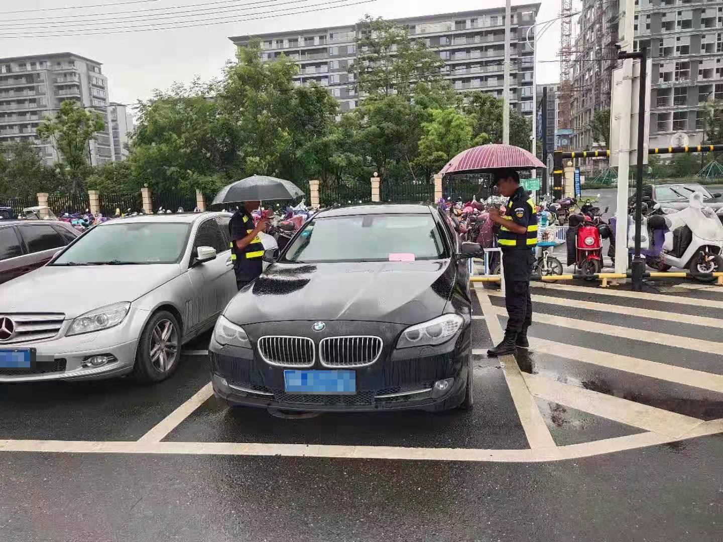 陈龙急忙在现场寻找车主,但没有找到,便将情况上报项目队长,并按照指示找来雨伞挡在车窗上。随后,陈龙从车内副驾驶旁的空格里看到车辆信息,联系到了车主。车主得知情况很是着急,说自己上班的地方很远,一时半会赶不回来,请求陈龙一定帮帮忙。