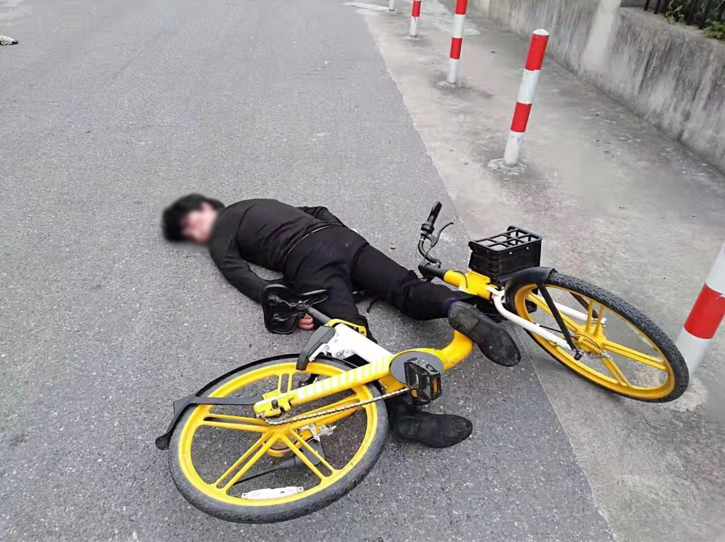 当日6:15,林志明和刘大旺巡逻至高青路联丰路路口时,看到一骑单车男子摔倒在地,便赶紧跑上前,男子满脸是血,躺倒在地上没有反应。
