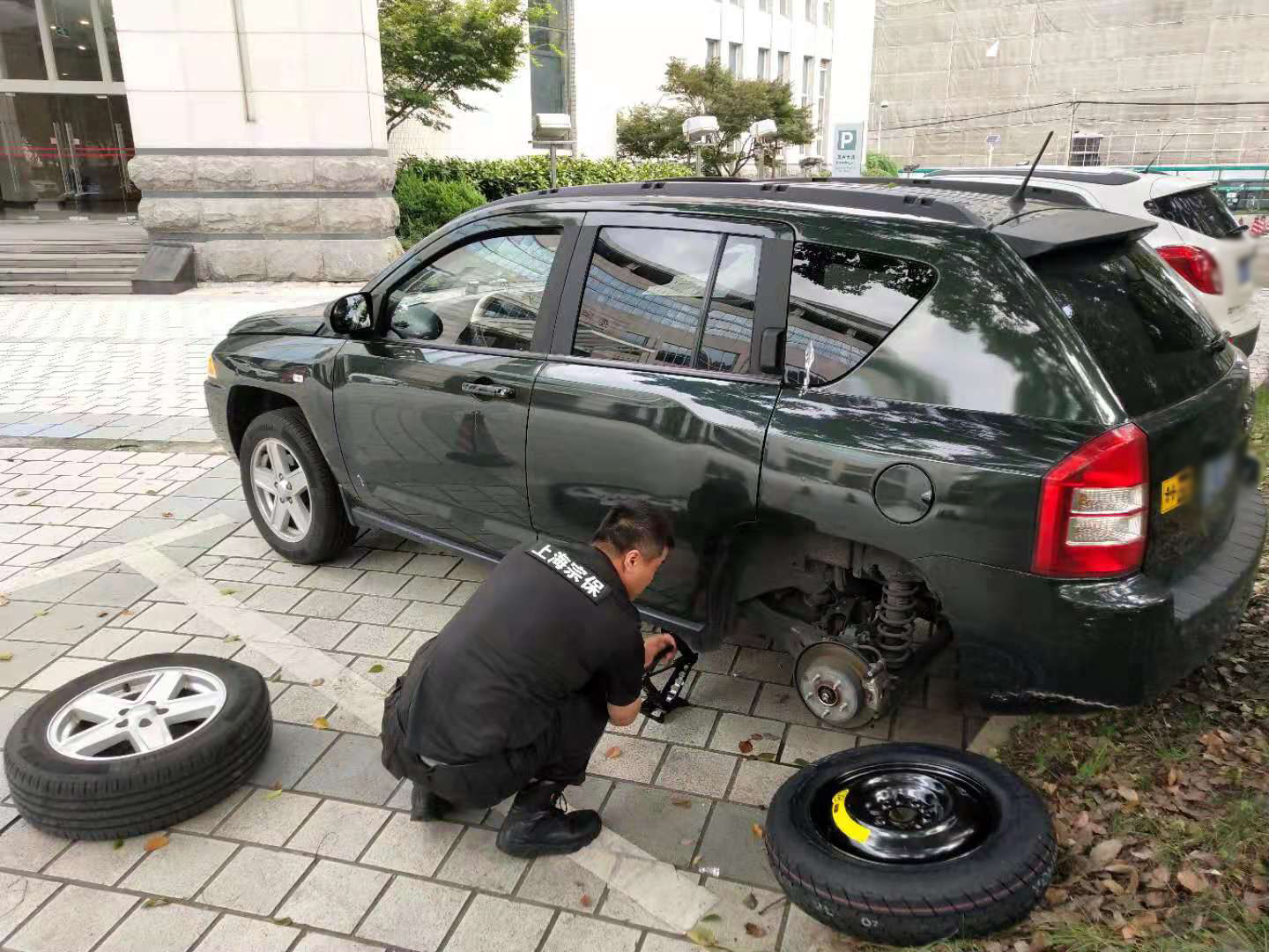 7月8日,宗保公司驻市委党校项目队员帮助党校培训学员更换车备胎。