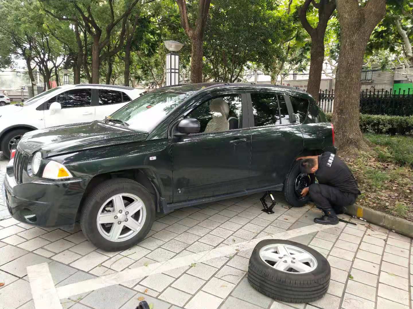 轮胎扎钉无法行 队员换胎解难题—市委党校项目队员帮助党校学员更换车备胎