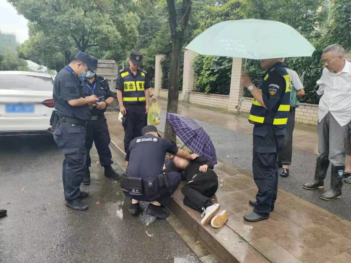 7月3日,浙江民泰驻闲林城管项目队员帮助醉酒男子。
