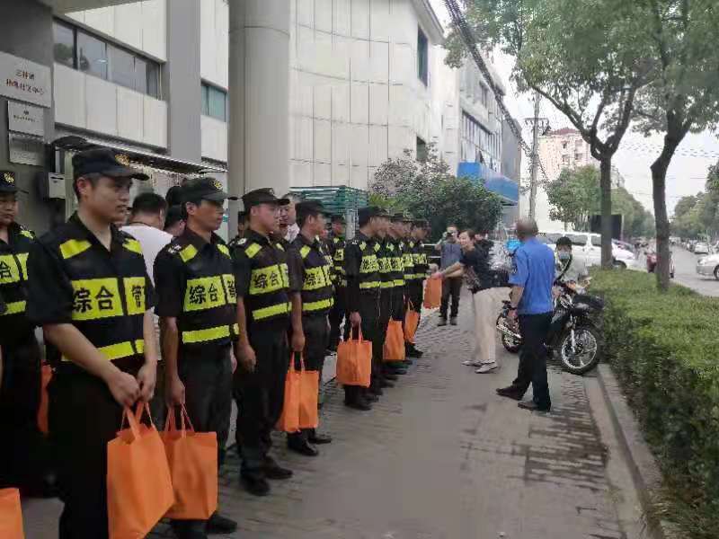7月8日上午,三林镇杨思社区诸瑛书记、城管中队领导和公司副总经理王耀,看望慰问三林市容项目宗保队员。