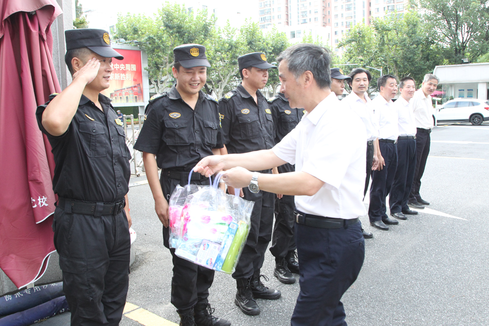 7月29日,市委党校副校长李渤一行,冒着炎炎烈日,看望慰问高温下坚守岗位的宗保公司安保人员。