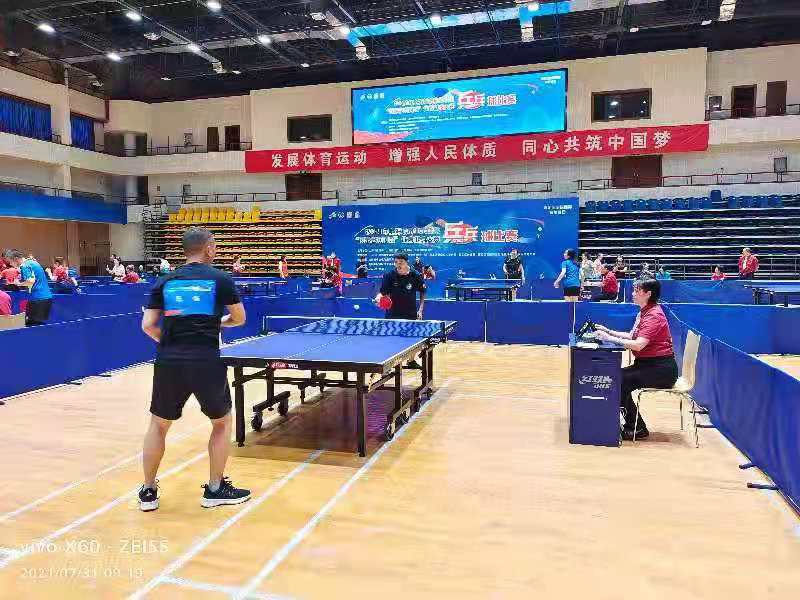 7月31日,宗保公司参加在嘉定区市民健身中心举行的2021年上海城市业余联赛“展示老兵风采”体育健身大赛乒乓球比赛活动。