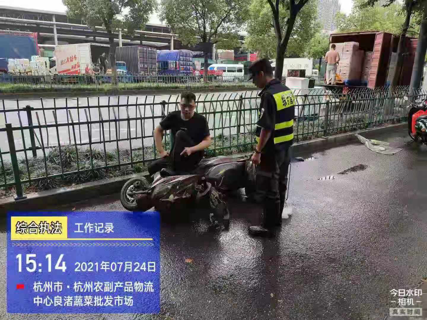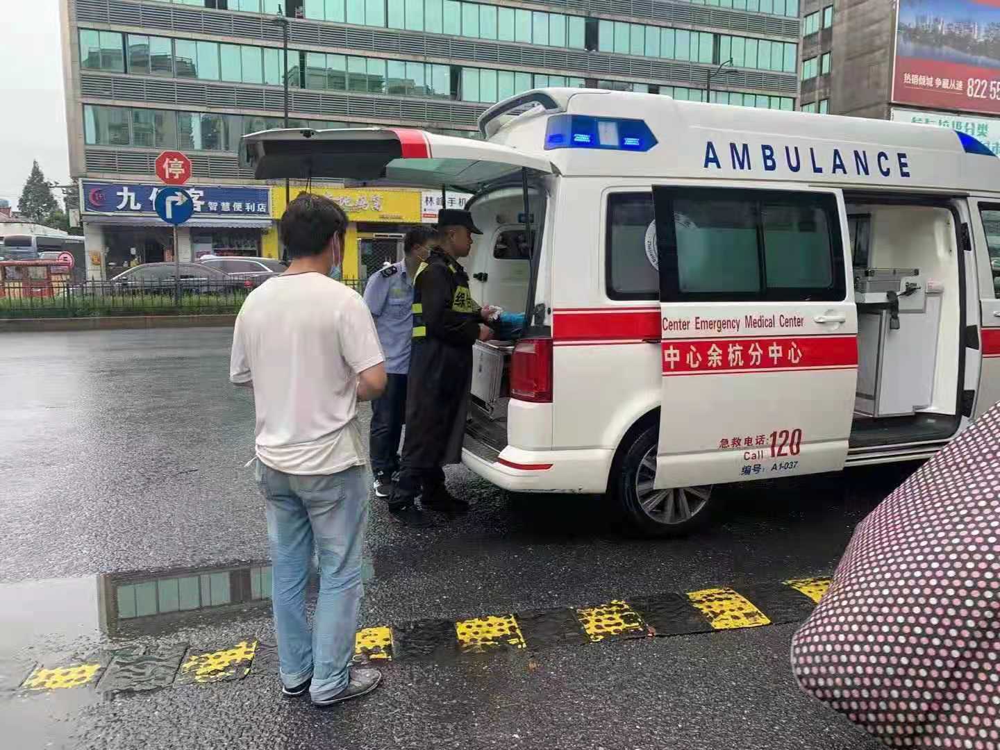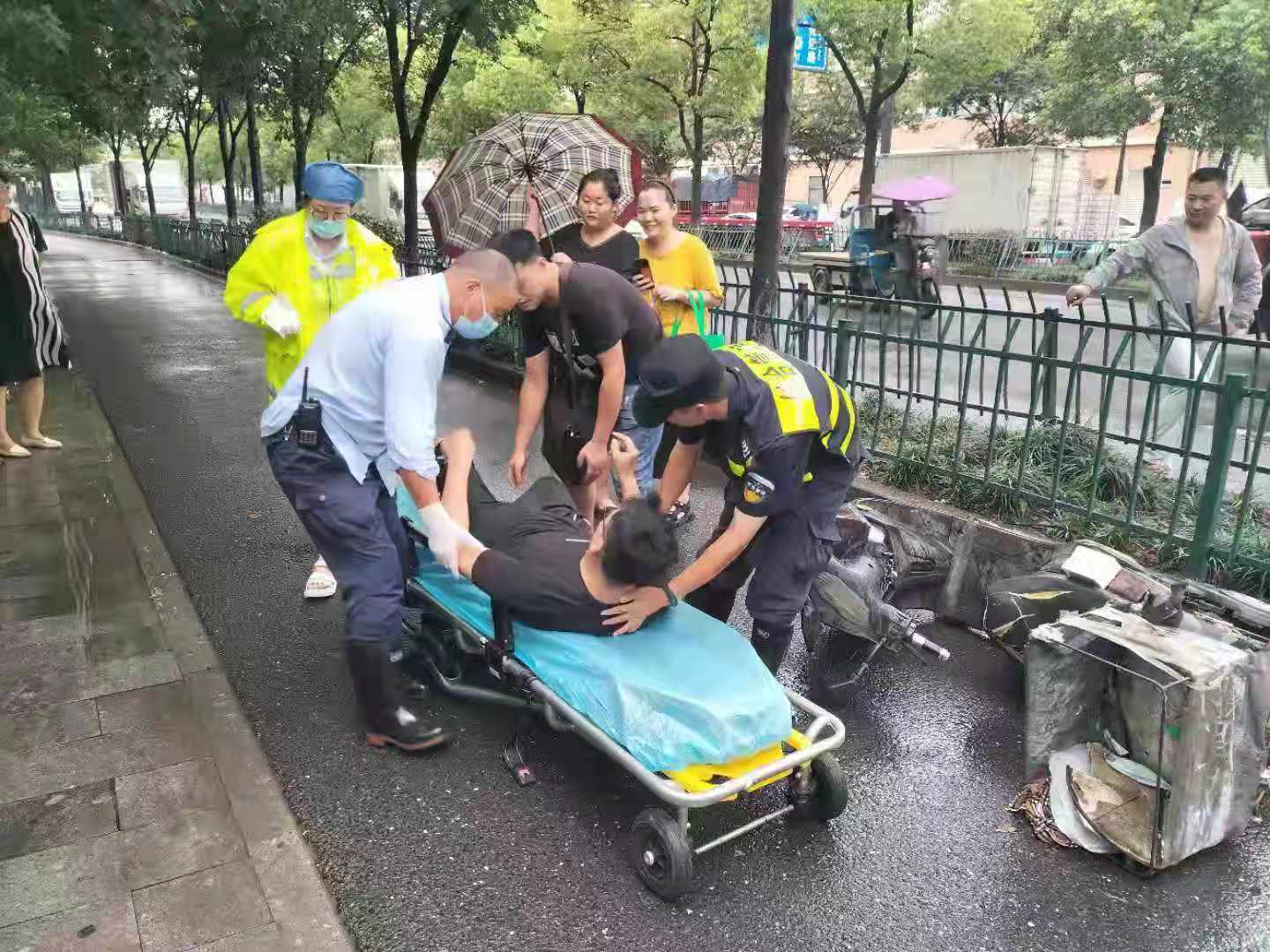 7月24日,浙江民泰良渚物流项目队员帮助骑车摔伤男子及时就医。