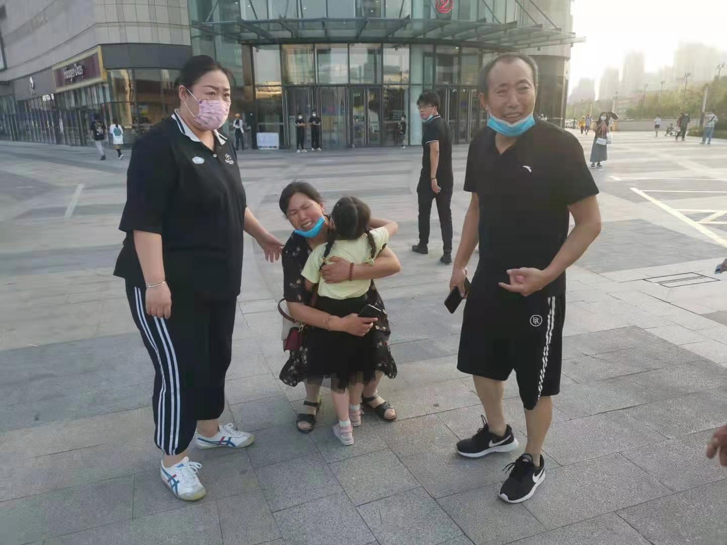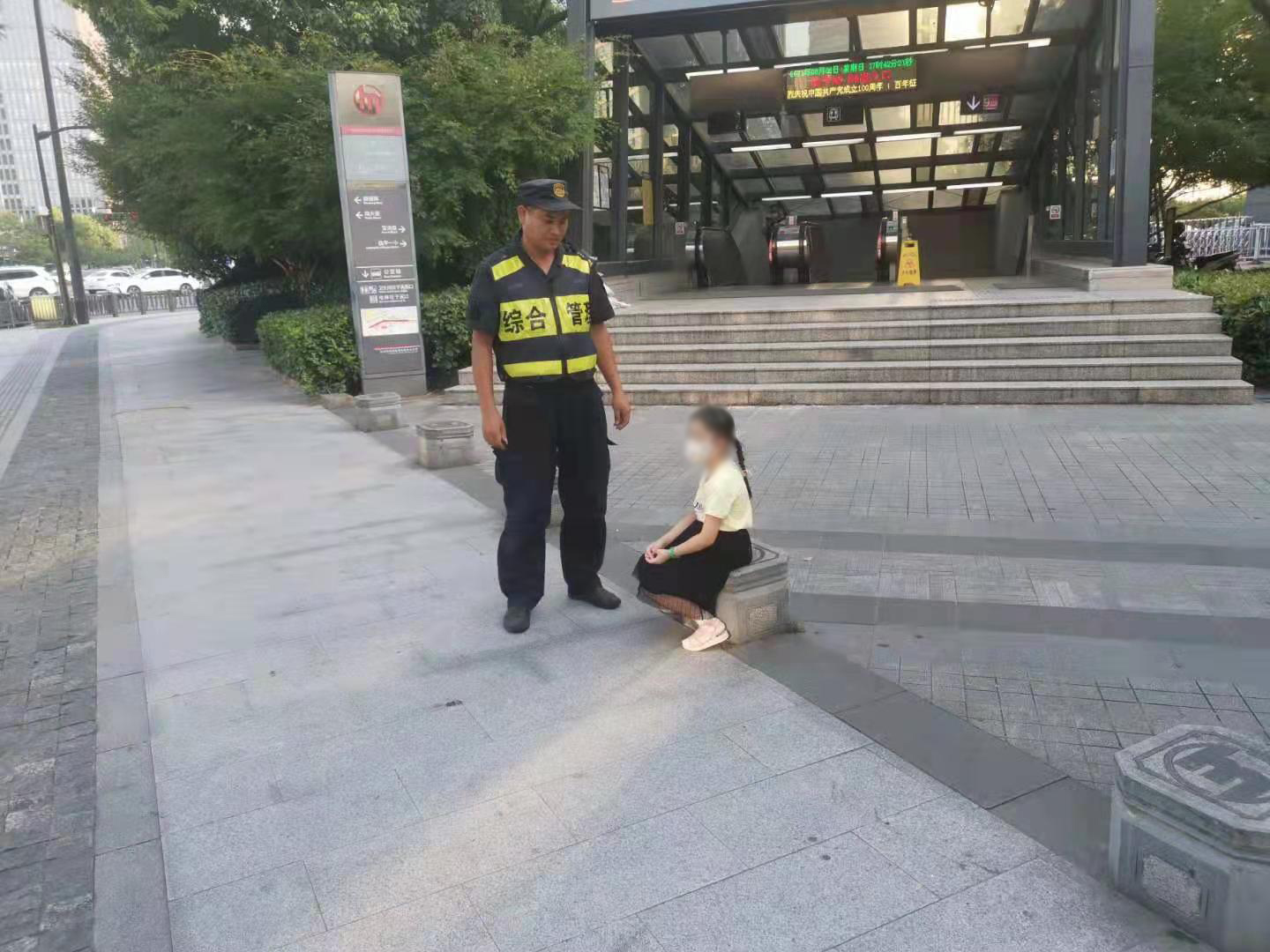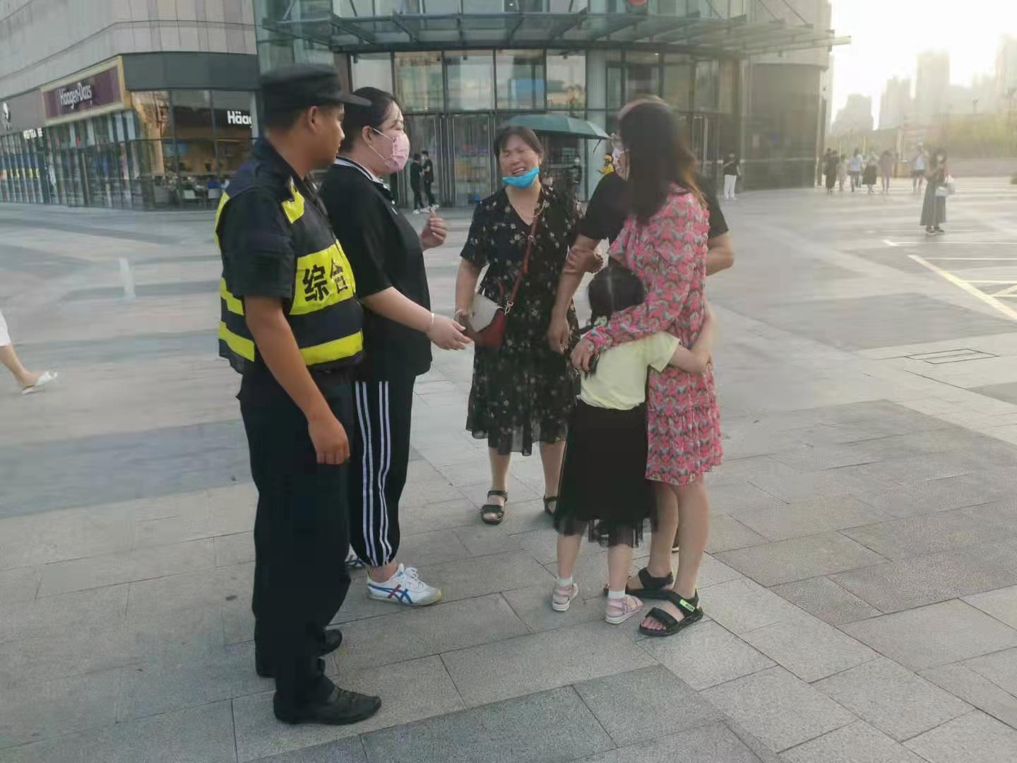 8月8日,浙江民泰驻南苑市容项目队员杜光昌帮助走散女童找到家人。