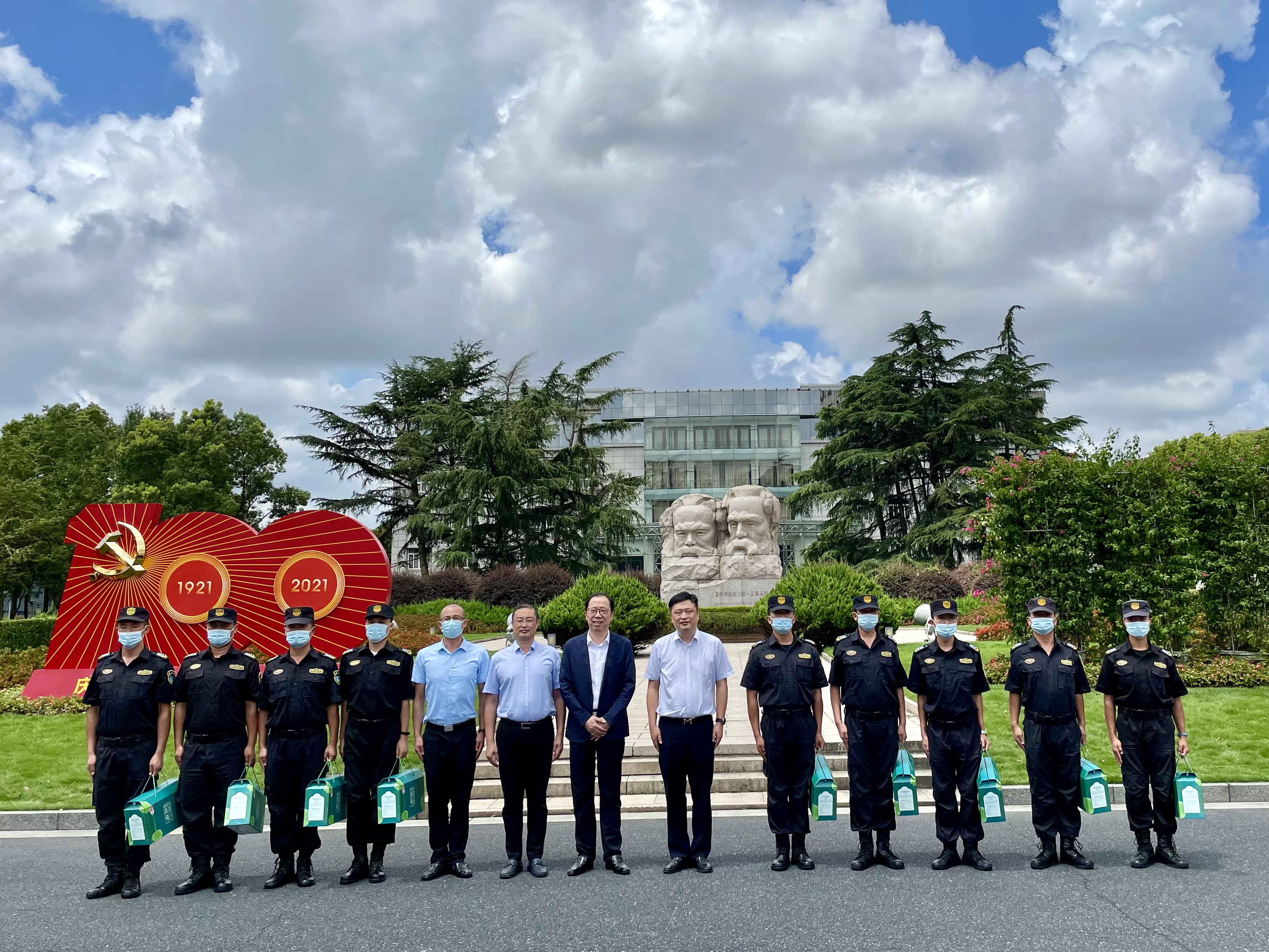 8月4日上午,上海市保安服务行业协会秘书长杨跃毅一行,冒着酷暑到上海市委党校看望慰问宗保队员。公司副总经理蒋德玉全程陪同。