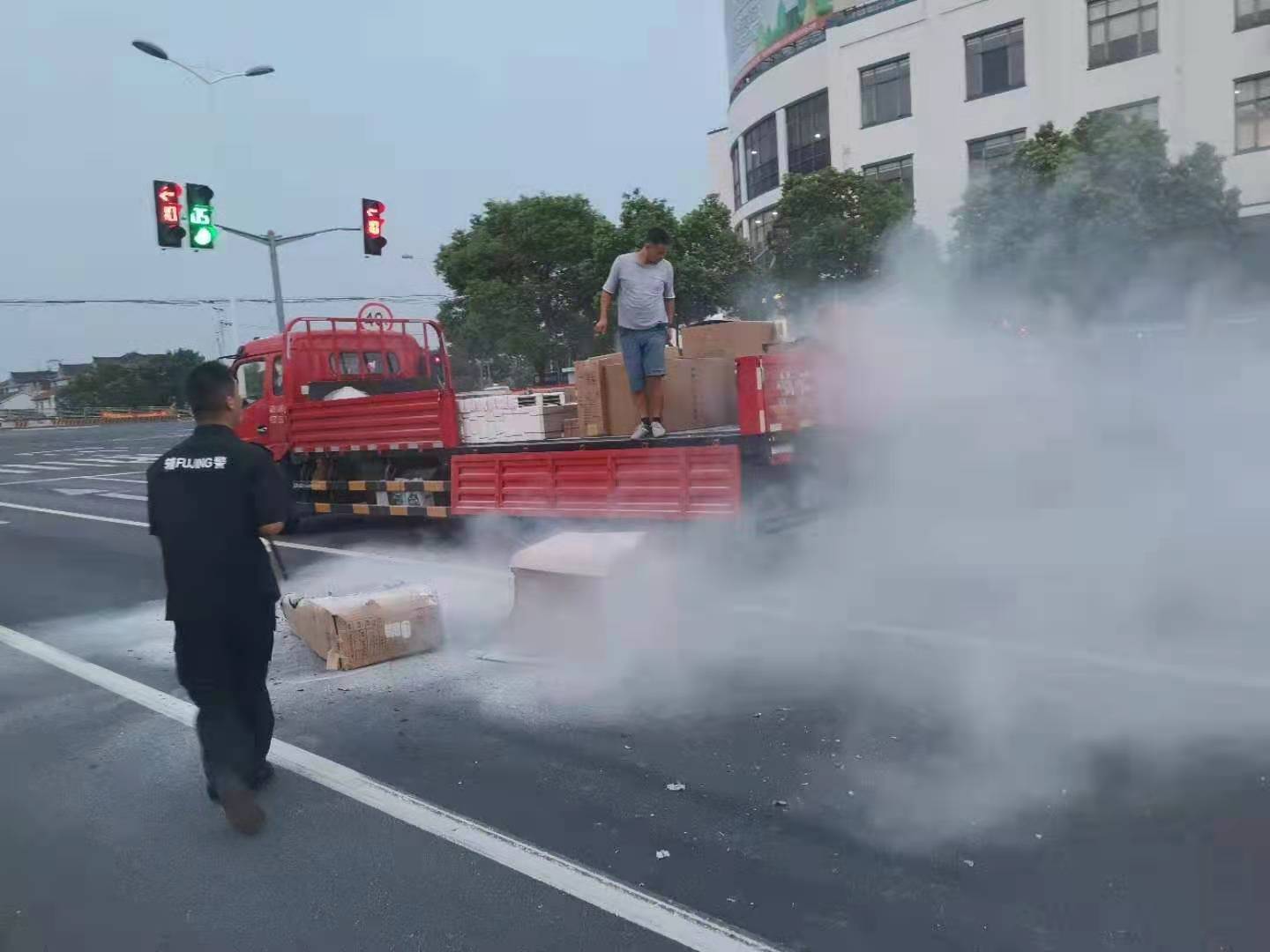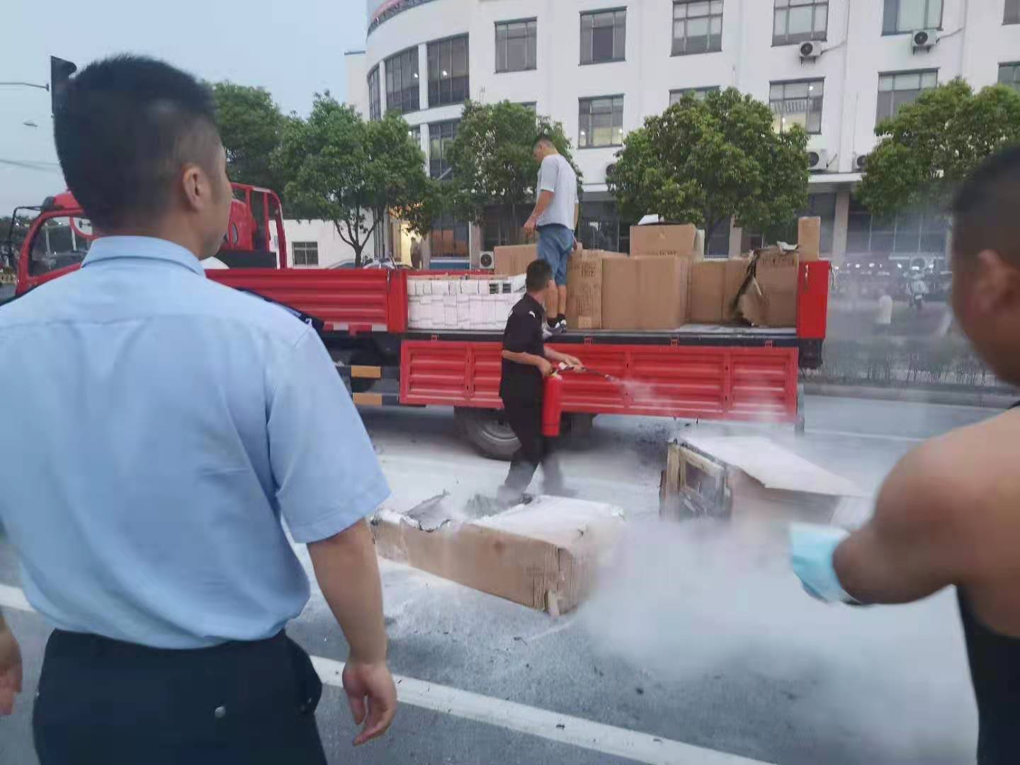 8月24日,宗保公司驻新场辅警项目队员宋其波帮助货车司机灭火,受到好评。